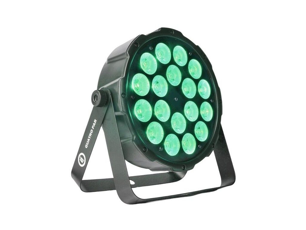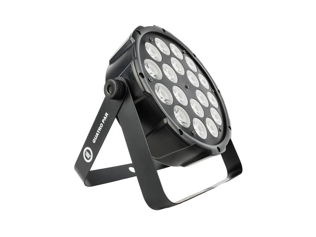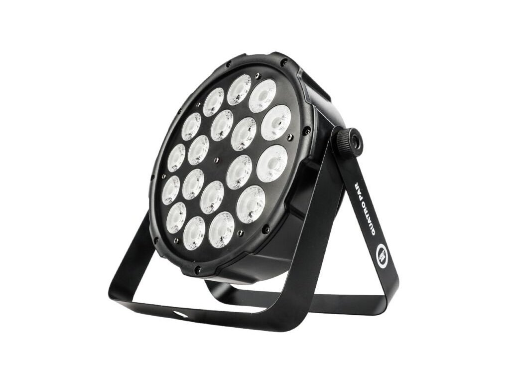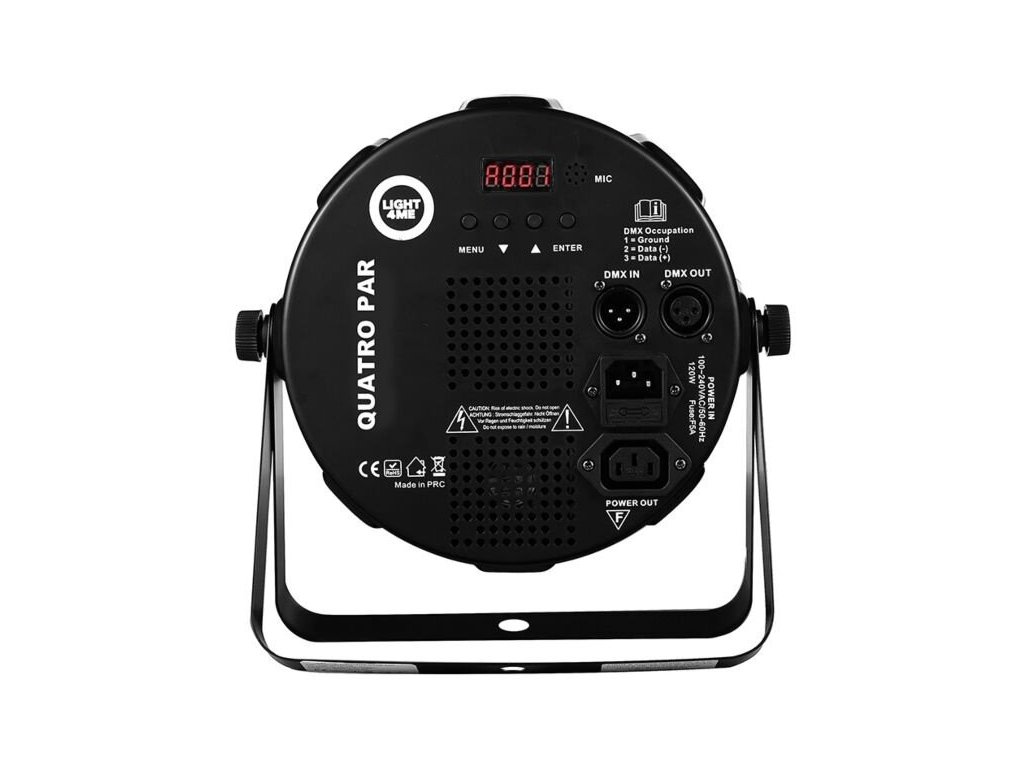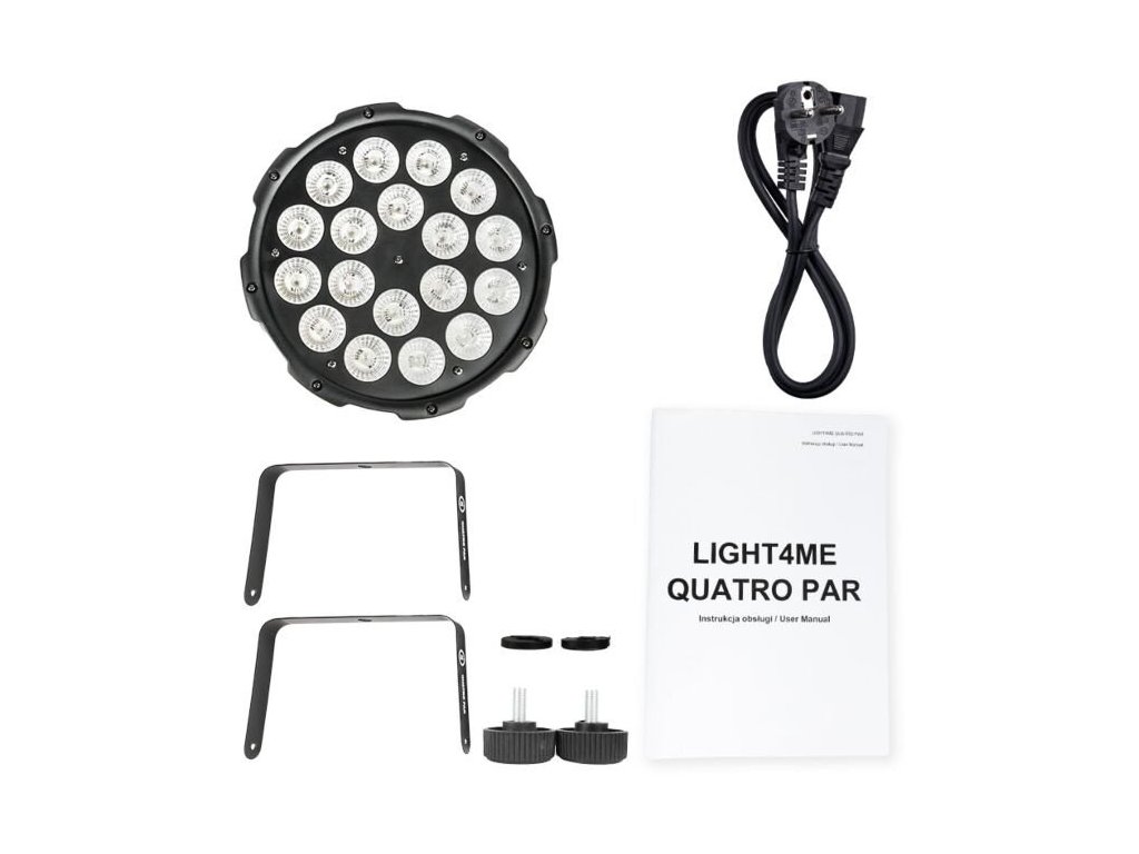 LIGHT4ME QUATRO PAR 18x10W RGBW to wysokiej jakości urządzenie oświetleniowe, które idealnie sprawdzi się dla każdego, kto potrzebuje oświetlenia scenicznego. Ten reflektor sceniczny LED oferuje wyjątkową jakość światła dzięki osiemnastu wydajnym diodom LED w palecie kolorów RGBW o mocy każdej z nich 10 W. Dzięki ściemniaczowi o pełnym zakresie użytkownicy mogą łatwo regulować jasność światła w zależności od potrzeb. Urządzenie oświetleniowe jest wyposażone w stroboskop z regulowaną prędkością, który umożliwia użytkownikom tworzenie dodatkowych scen świetlnych.