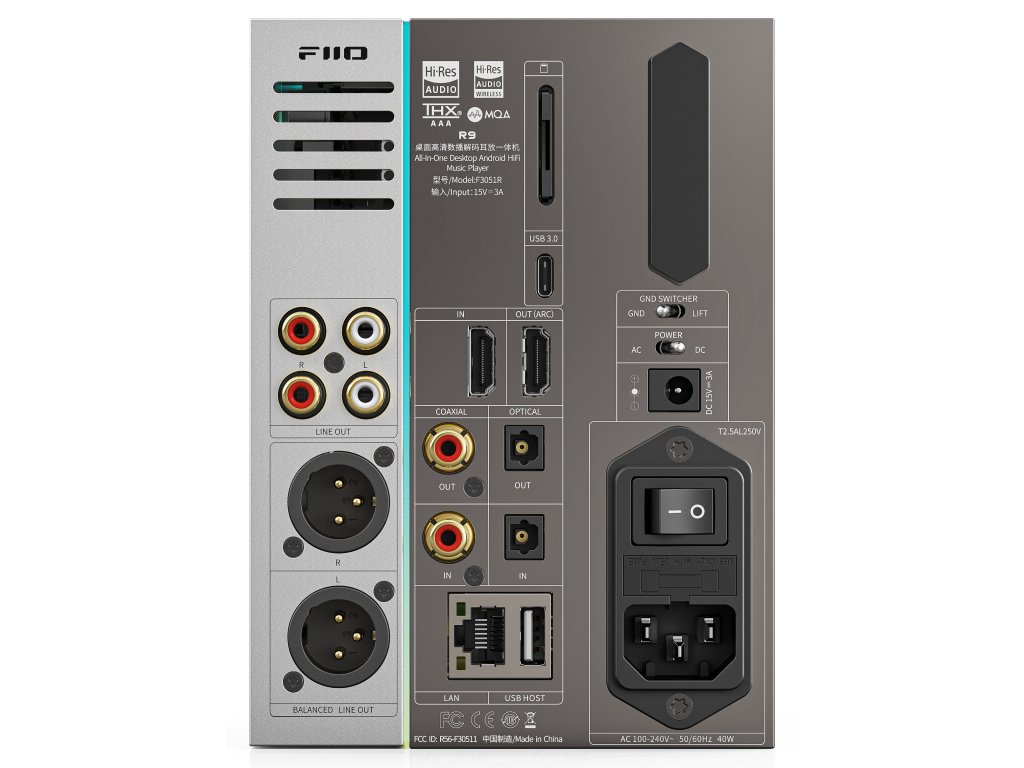FiiO w przeszłości pracowało już z układem ES9038PRO w urządzeniach M17, Q7, K9 Pro SS i M15S, na których zdobyło wiele doświadczenia, które wykorzystano do jego implementacji w R9. Zastosowano tu aż dwa chipy, po jednym na kanał lewy i prawy. Są one połączone z 8-kanałową konstrukcją najnowszej generacji wzmacniaczy THX AAA 788+, która zapewnia w pełni symetryczne wyjście o mocy do 7300mW na kanał przy 32 omach. R9 jest zbudowany na systemie operacyjnym Android, dzięki czemu obsługuje wszystkie platformy streamingowe, jakich audiofil może sobie życzyć.