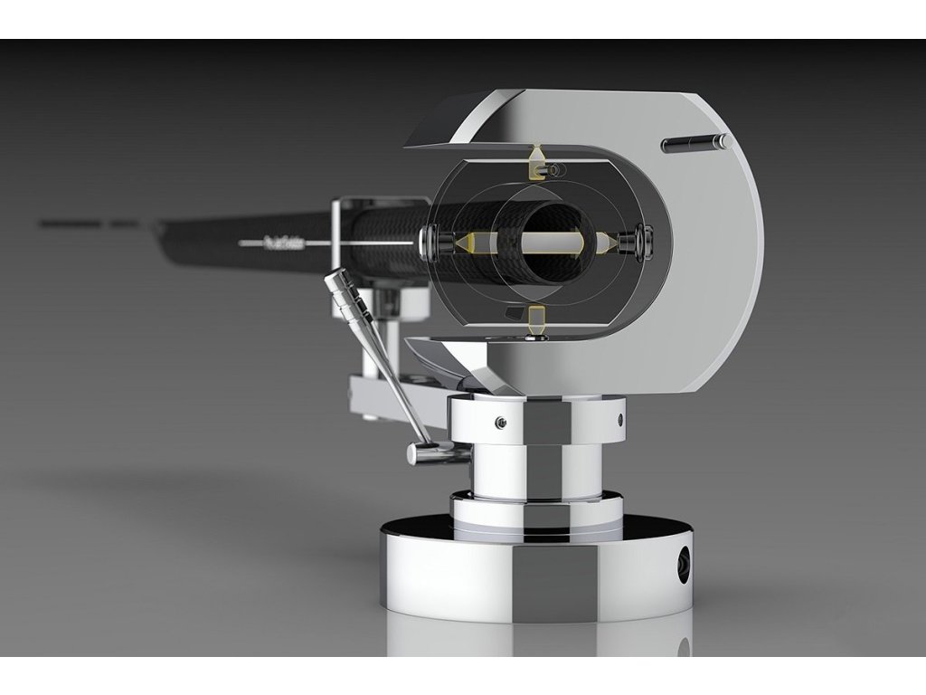 Ramię 12" EVO 12 CA PREMIUM HG wykorzystuje szwajcarskie, odwrócone łożysko kardana ABEC 7 o referencyjnej jakości z 4 końcówkami ze stali nierdzewnej w łożyskach kulkowych. Ten typ łożyska jest doskonale stabilny i ma ultra niskie tarcie, co gwarantuje precyzyjnie dokładne prowadzenie. Rezultatem jest maksymalnie szczegółowa i otwarta scena dźwiękowa oraz doskonała prezentacja wszystkich mikroinformacji zarejestrowanych w rowku. Łożysko jest umieszczone w masywnej obudowie ze stali nierdzewnej, która zapewnia niezbędną stabilność. Masywny pierścień zewnętrzny jest otwarty, aby zapobiec naprężeniom i powstawaniu rezonansów.