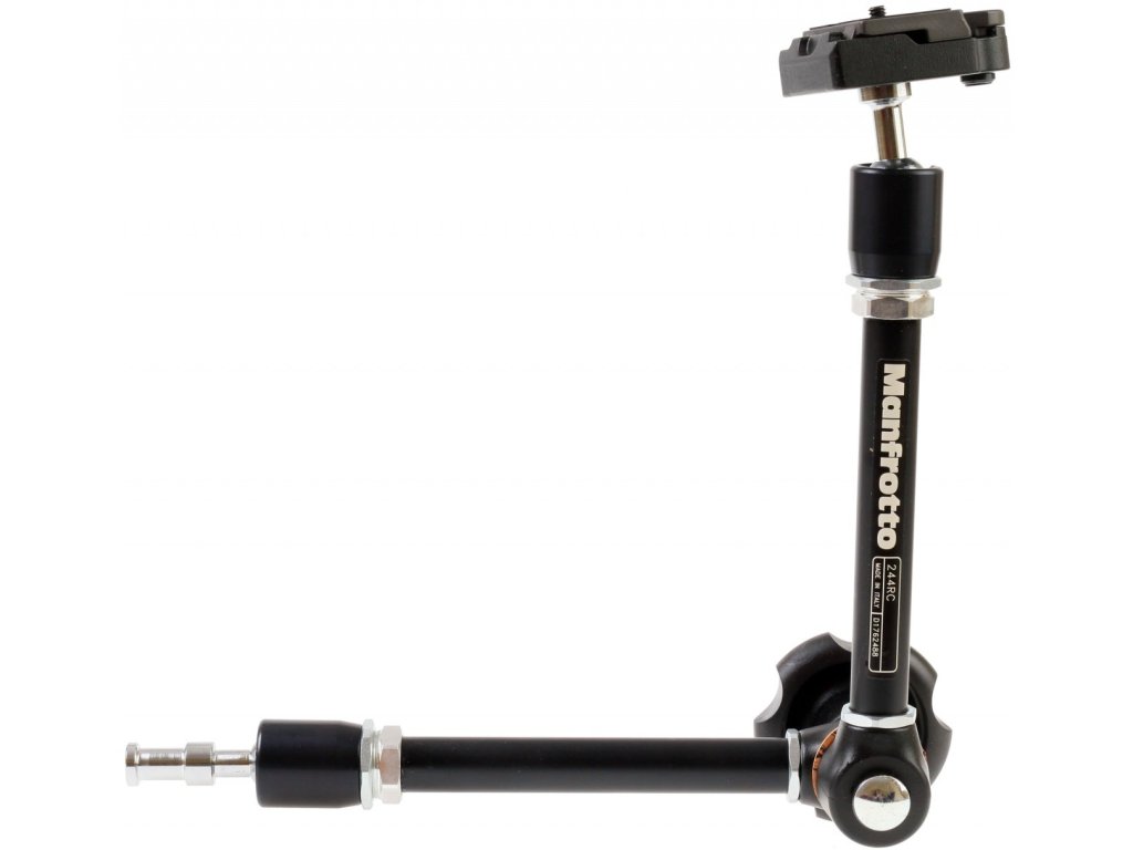 Manfrotto 244RC to uniwersalne ramię o długości 49 cm przeznaczone do montażu akcesoriów, takich jak dodatkowe monitory, kamery, mikrofony, oświetlenie LED i inne. Montaż i blokowanie ramienia jest bardzo proste i szybkie. Ramię jest zmienne, 3 sekcje z blokowaniem wszystkich obrotowych przegubów jednym pokrętłem.