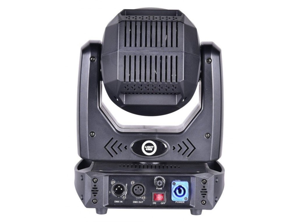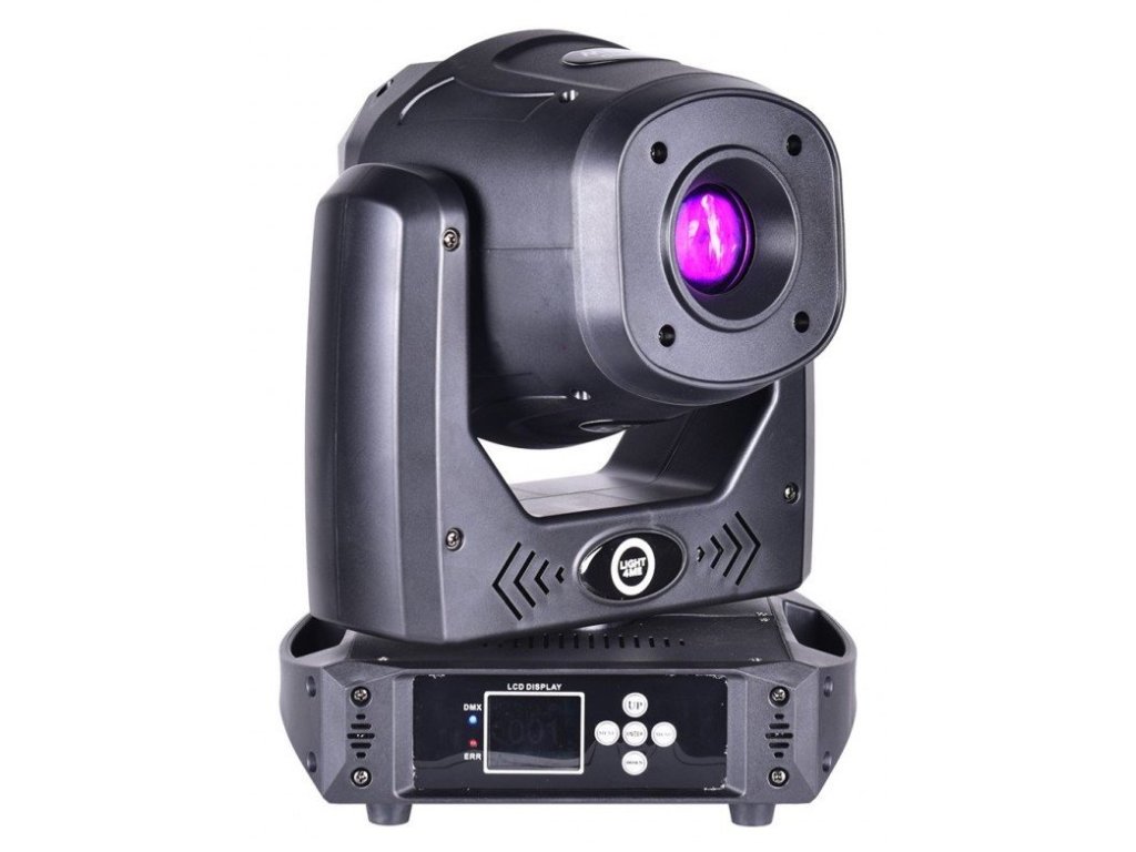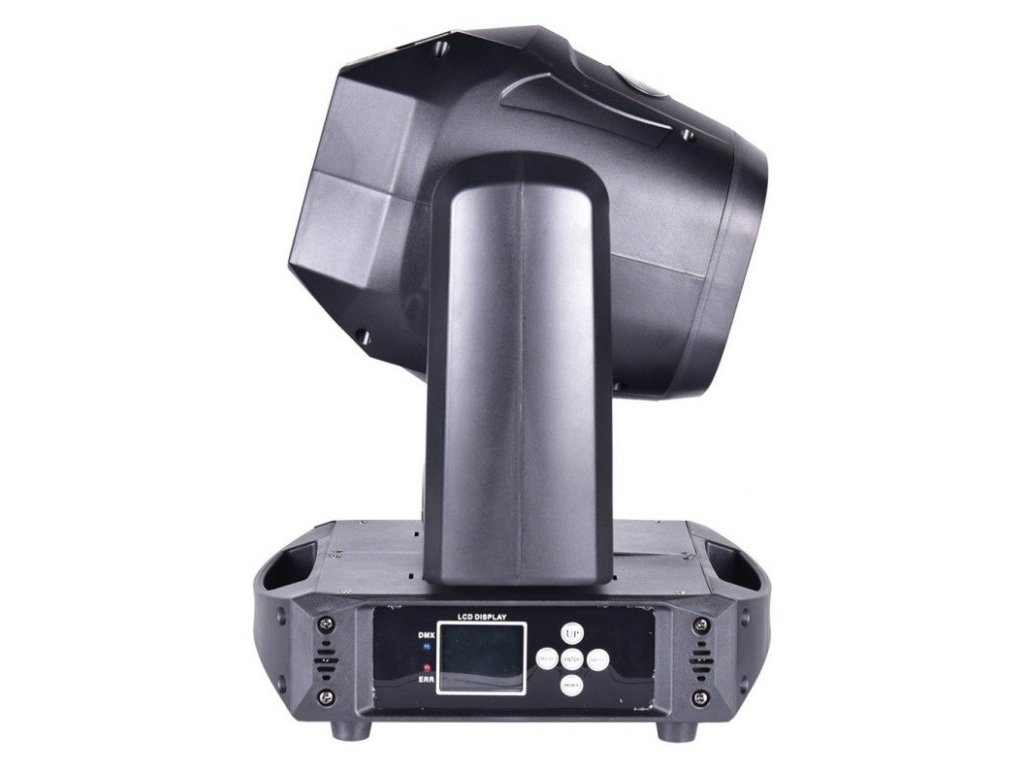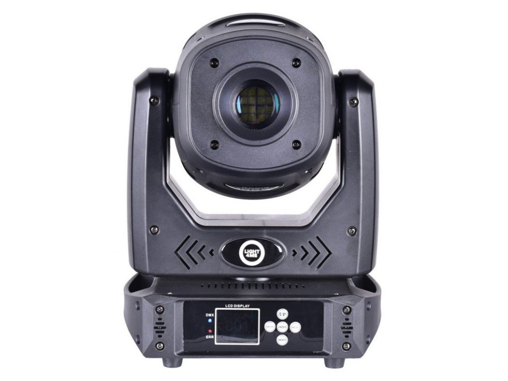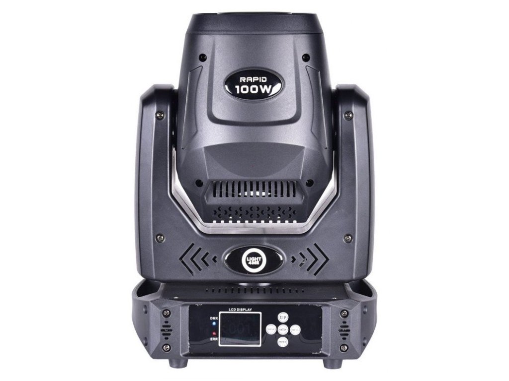 Ruchoma głowa wyposażona w białą diodę 100 W, 7-kolorowe koło, statyczne i obrotowe koło gobo z łącznie 13 wzorami, 3-stronnym pryzmatem i elektronicznym ściemniaczem z funkcją stroboskopu. Urządzenie jest odpowiednie do oświetlenia scenicznego i klubów tanecznych.
