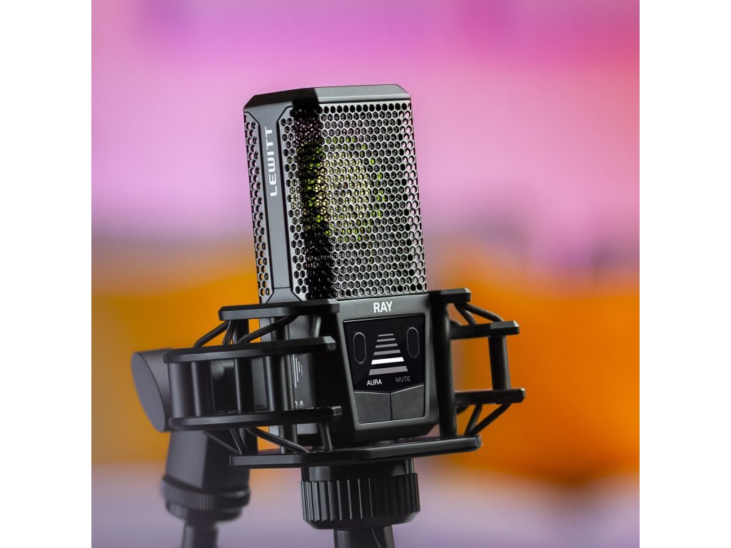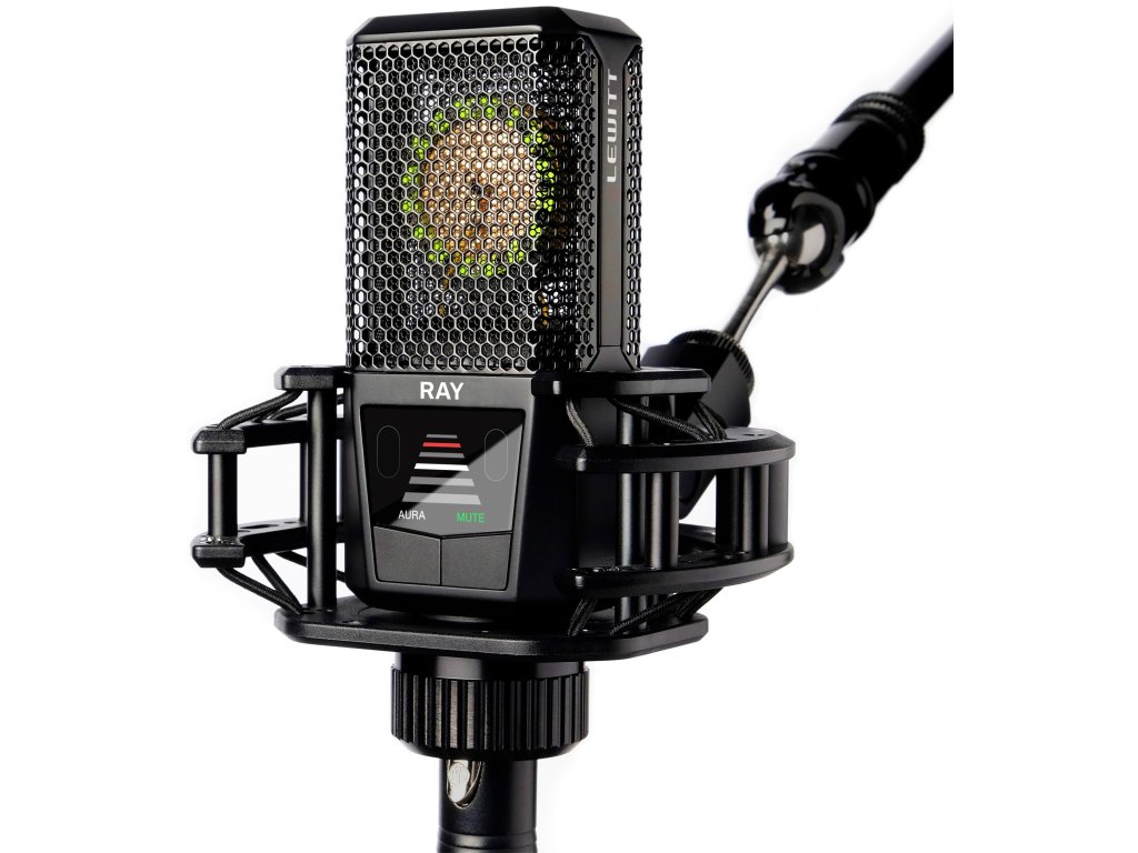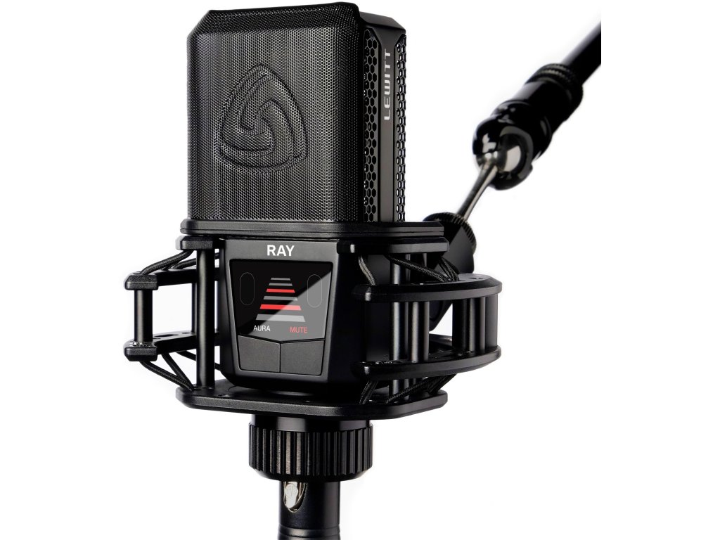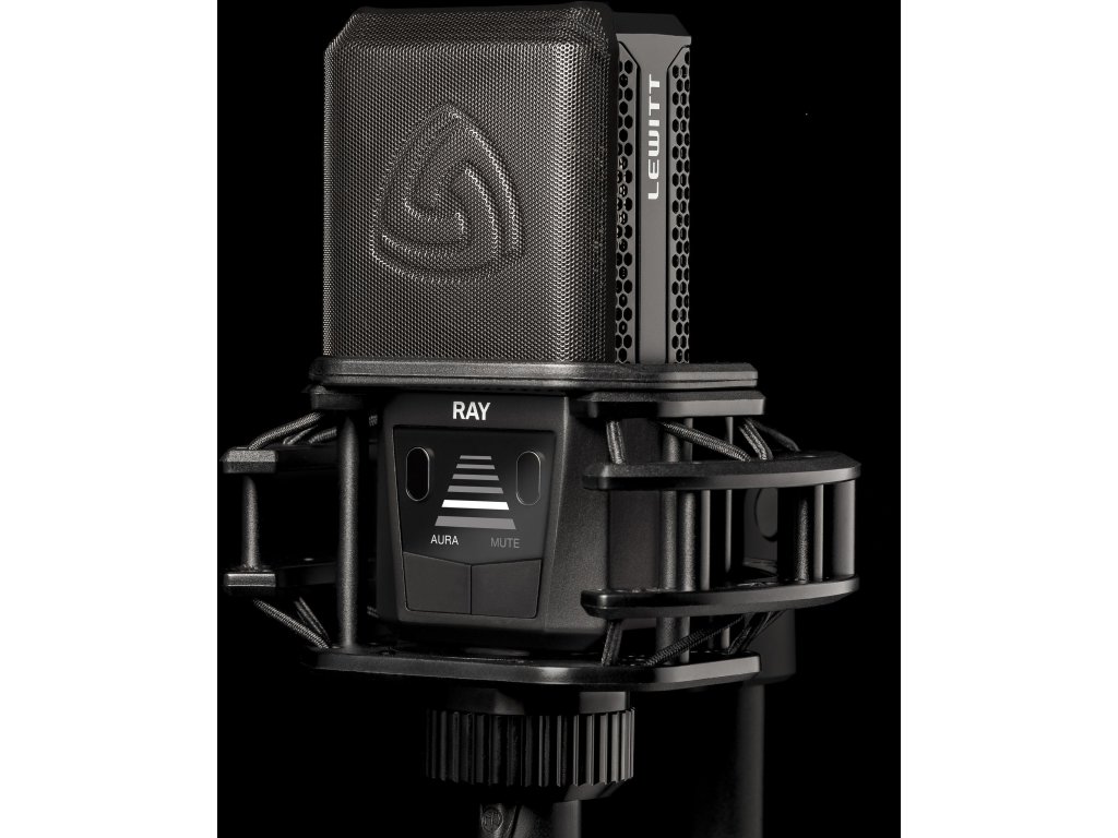 Lewitt RAY to mikrofon pojemnościowy z 1-calową pozłacaną membraną o charakterystyce kardioidalnej i nowoczesną funkcją nagrywania Aura.