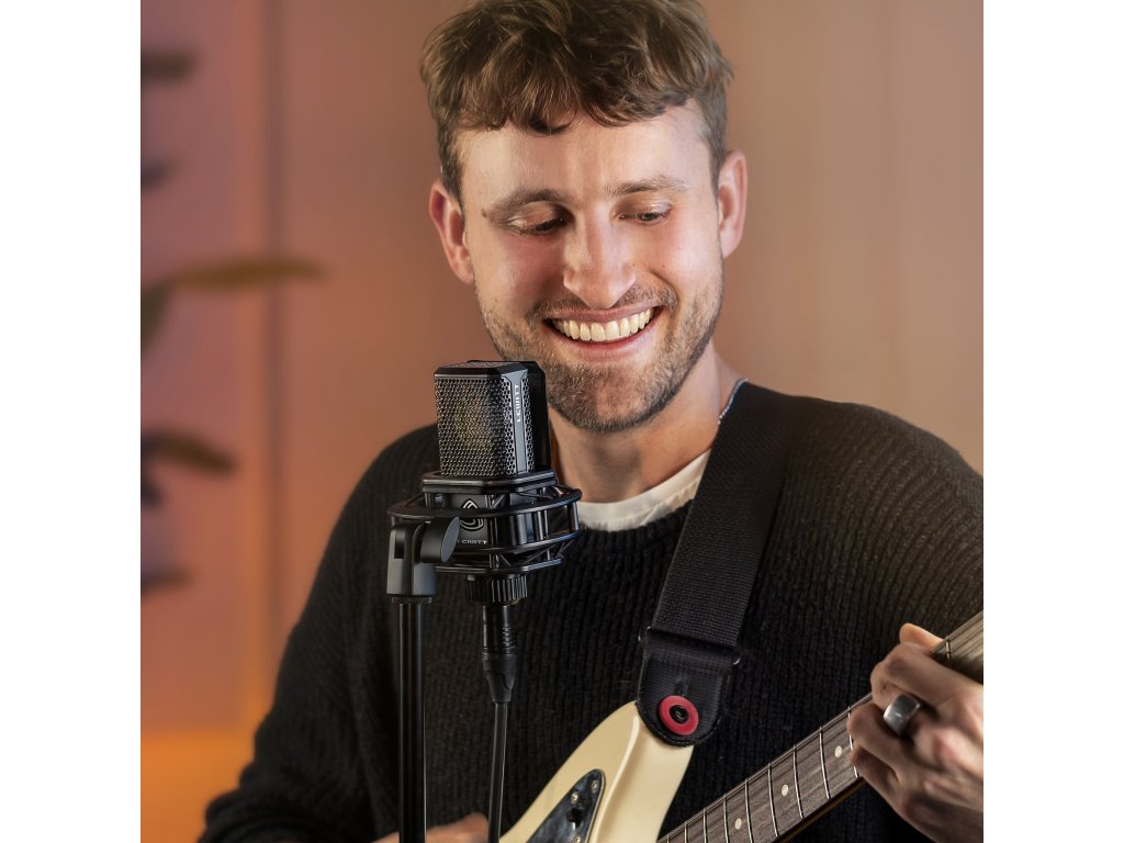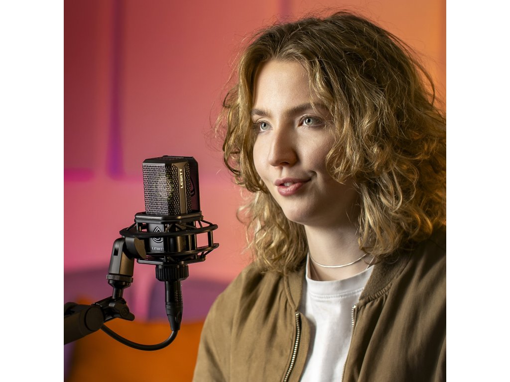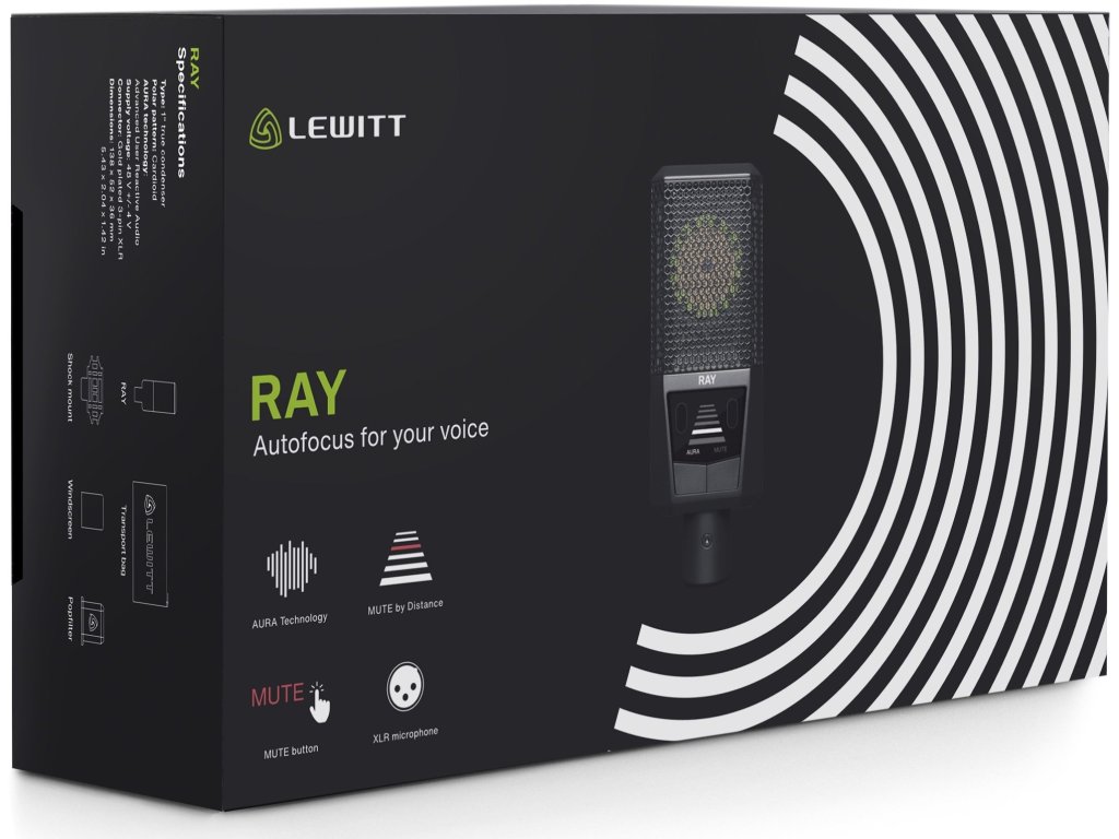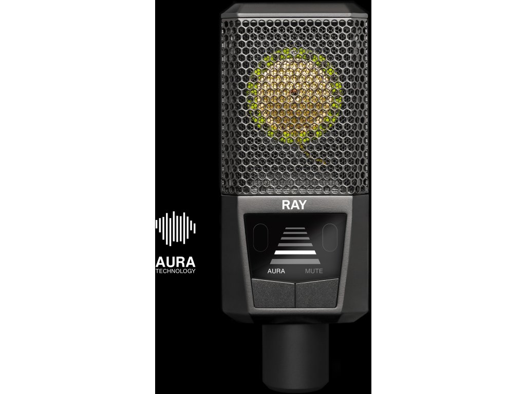 Lewitt RAY to mikrofon pojemnościowy z 1-calową pozłacaną membraną o charakterystyce kardioidalnej i nowoczesną funkcją nagrywania Aura.