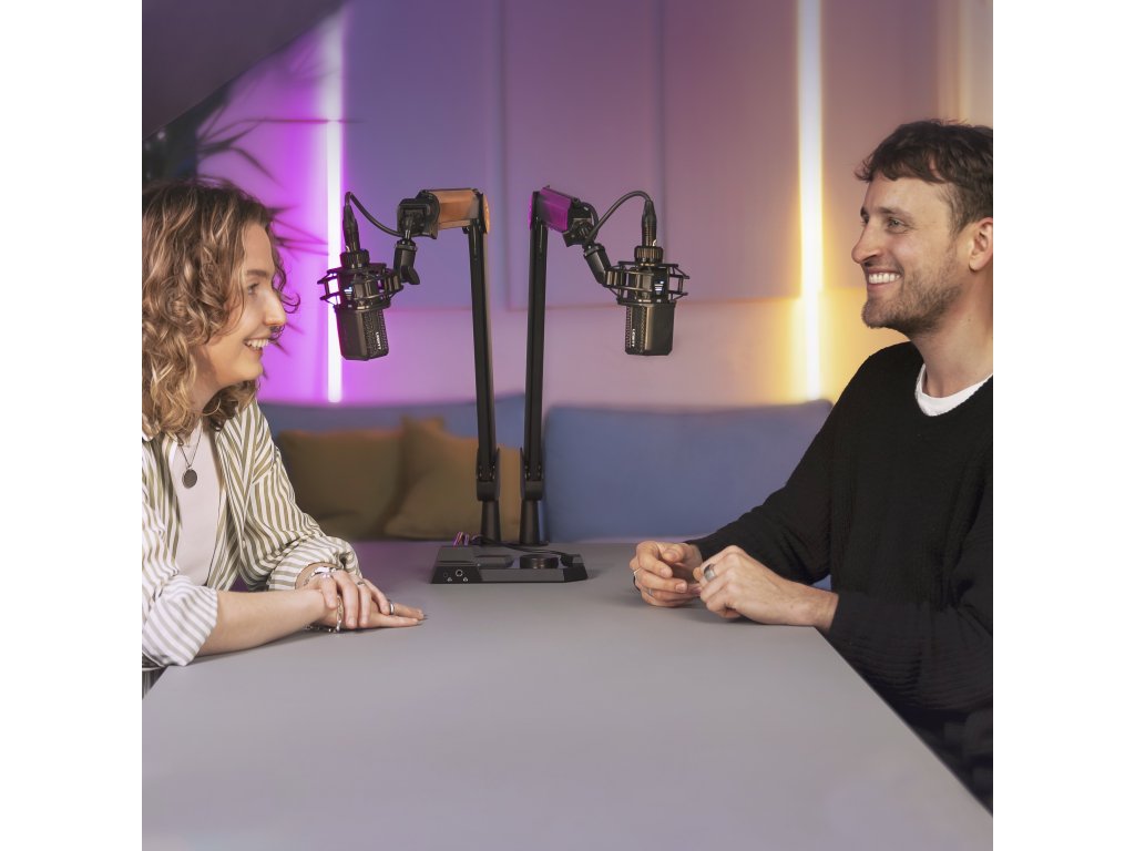 Przycisk MUTE bezpośrednio na mikrofonie RAY to pierwszy profesjonalny mikrofon studyjny z dedykowanym przyciskiem MUTE. Po aktywacji funkcji MUTE uzyskasz wyraźny wizualny feedback, który działa również przy aktywacji funkcji MUTE by Distance. Ten wygodny sposób sterowania dźwiękiem jest idealny do streamowania, podcastów i wideokonferencji.