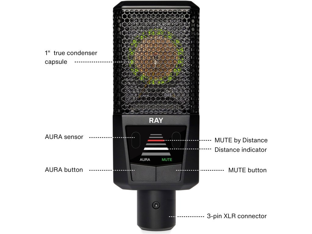 RAY pokonuje główne ograniczenia zwykłych mikrofonów – aby zapewnić stałą jakość dźwięku, należy zachować odpowiednią odległość i unikać ruchu. Podczas poruszania się w pobliżu mikrofonu dźwięk zwykle staje się głośny i dudniący, co jest zjawiskiem znanym jako efekt zbliżeniowy. Kiedy oddalasz się od mikrofonu, poziom dźwięku spada, a dźwięk staje się cieńszy. RAY zmienia te zasady dzięki technologii AURA opartej na czujnikach, które precyzyjnie dostosowują poziom i barwę nagrywania w zależności od odległości od mikrofonu. Ta funkcja automatycznie monitoruje Twój głos, dzięki czemu możesz skupić się wyłącznie na swoim występie i jednocześnie tworzyć bezbłędne nagrania do podcastów, treści, transmisji na żywo i produkcji muzycznej.
