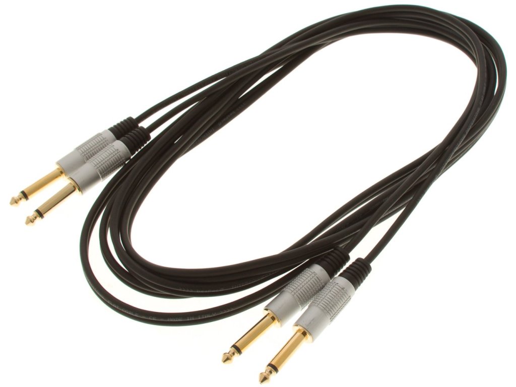 Dwukanałowy ekranowany kabel audio z wtykami mono, złącza z pozłacaną końcówką.