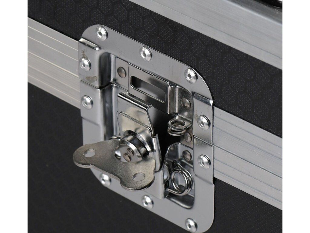 Zatrzaski motylkowe gwarantują bezpieczne i szybkie zamknięcie. Narożne kuliste osłony dodatkowo zabezpieczają walizkę przed uszkodzeniem podczas częstego ładowania i rozładowywania. Czarno-srebrny design świetnie komponuje się z pozostałym sprzętem scenicznym i podkreśla profesjonalny charakter Twojej realizacji.