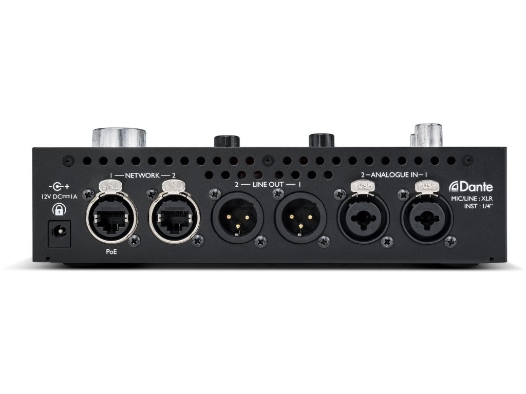 Para kombinowanych wejść XLR / Jack 6,3 mm umożliwia podłączenie sygnałów mikrofonowych, liniowych lub instrumentalnych. Analogowe wyjścia XLR na tylnym panelu oferują regulowany poziom do 24 dBu, a złącze 1/4" na przednim panelu zapewnia wydajne wyjście słuchawkowe, które jest przystosowane do obsługi słuchawek o wysokiej i niskiej impedancji.