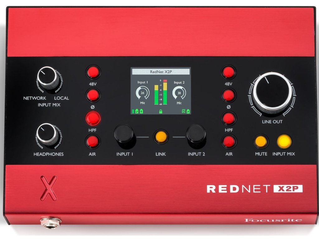 RedNet X2P to kompaktowy interfejs audio 2 x 2 Dante™ z dwoma przedwzmacniaczami mikrofonowymi Red Evolution, stereofonicznym wyjściem liniowym i stereofonicznym wzmacniaczem słuchawkowym. RedNet X2P natychmiast dodaje wejścia / wyjścia do interfejsu Focusrite Red lub dowolnego systemu Dante™ (audio-over-IP). Zasilanie, transmisja dźwięku i zdalne sterowanie odbywają się za pomocą jednego kabla Ethernet - wystarczy użyć przełącznika zasilania przez Ethernet lub iniektora PoE. Lokalny mikser wejściowy umożliwia sterowanie osobistym monitoringiem "more me", podczas gdy blokowanie sterowania zapewnia, że ustawienia pozostają niezmienione podczas zdalnego użytkowania.