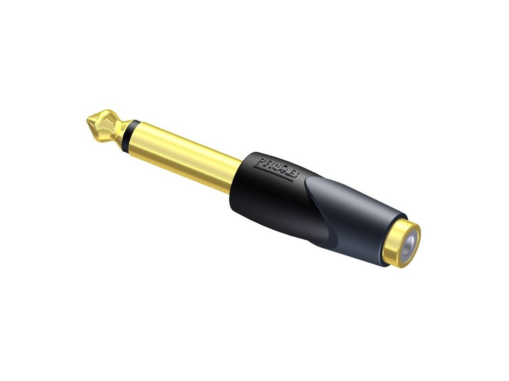 Wysokiej jakości redukcja z RCA Żeńskie na Jack 6,3mm Męski Mono, pozłacane kontakty, wytrzymała obudowa z tworzywa sztucznego.