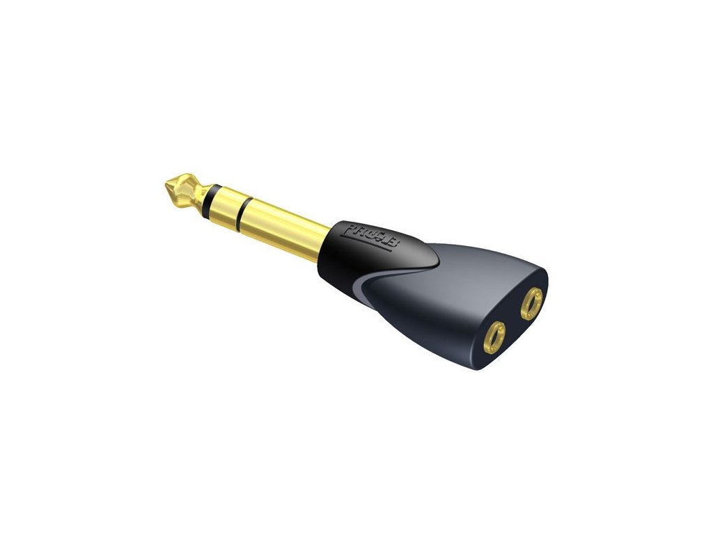 Wysokiej jakości redukcja z 2x Jack 3,5mm Stereo na 1x Jack 6,3mm Stereo, pozłacane kontakty, wytrzymała plastikowa obudowa.