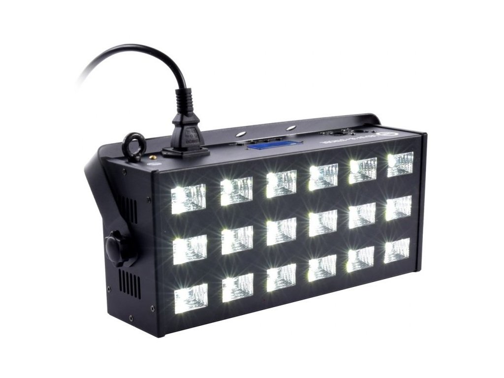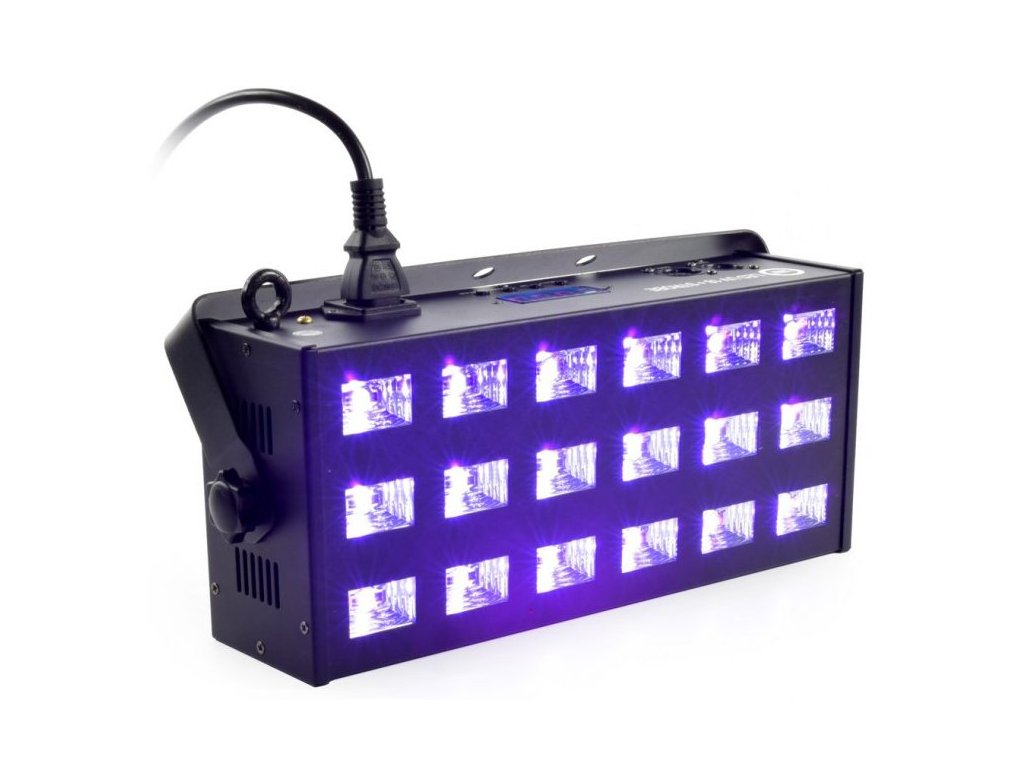LIGHT4ME UV LED 18 + stroboskop, z mocnymi diodami LED 3W, których głównym zadaniem jest białe światło i światło ultrafioletowe. Urządzenie doskonale nadaje się do restauracji, klubów tanecznych i dyskotek, gdzie promieniowanie UV tworzy efekt podobny do fluorescencji niektórych kolorów - zwłaszcza białego.