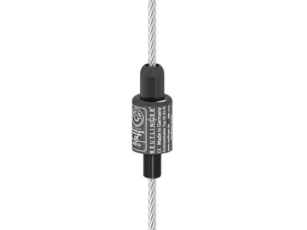 Uchwyt linki z gwintem zewnętrznym, nakrętką zabezpieczającą i mechanizmem chwytającym.
