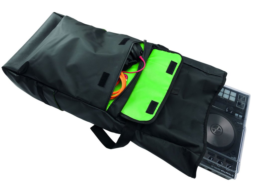 Nowy Riot Control-Pack Lite został opracowany specjalnie dla DJ-ów i muzyków, którzy często podróżują z kontrolerem DJ lub innym sprzętem produkcyjnym. Wyściełana komora główna jest wyposażona w zintegrowany pokrowiec na laptopa i regulowaną wysokość zamknięcia dla maksymalnej elastyczności przechowywania. Jest miejsce na obsługę modeli takich jak Pioneer DDJ-800, DDJ-SR2, NI Kontrol S4MK3 lub Roland DJ-707M itp. Wraz z laptopem i akcesoriami. Mniejsze akcesoria, takie jak słuchawki, kable i zasilacze, można łatwo schować w dużej przedniej kieszeni.
