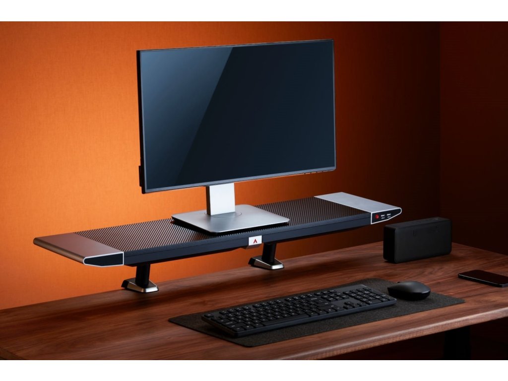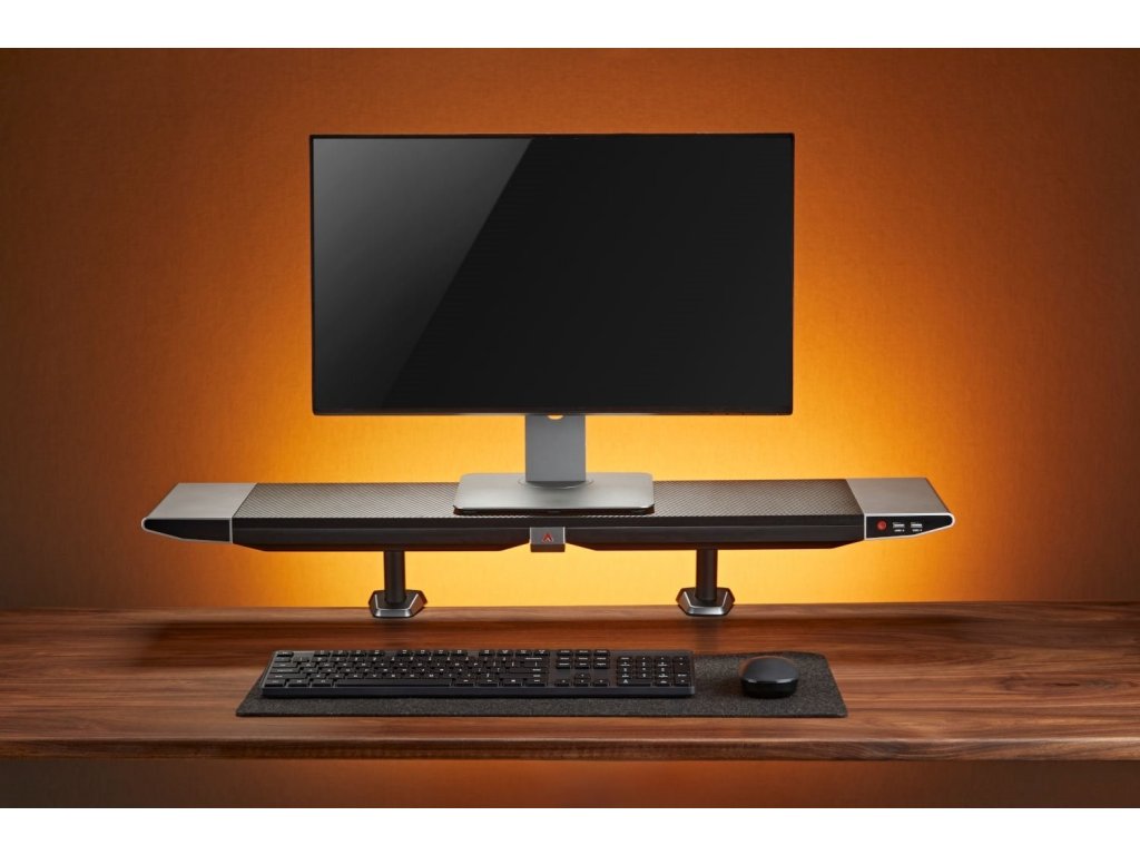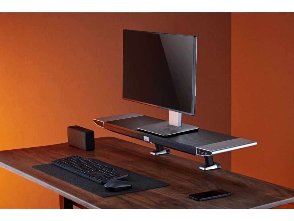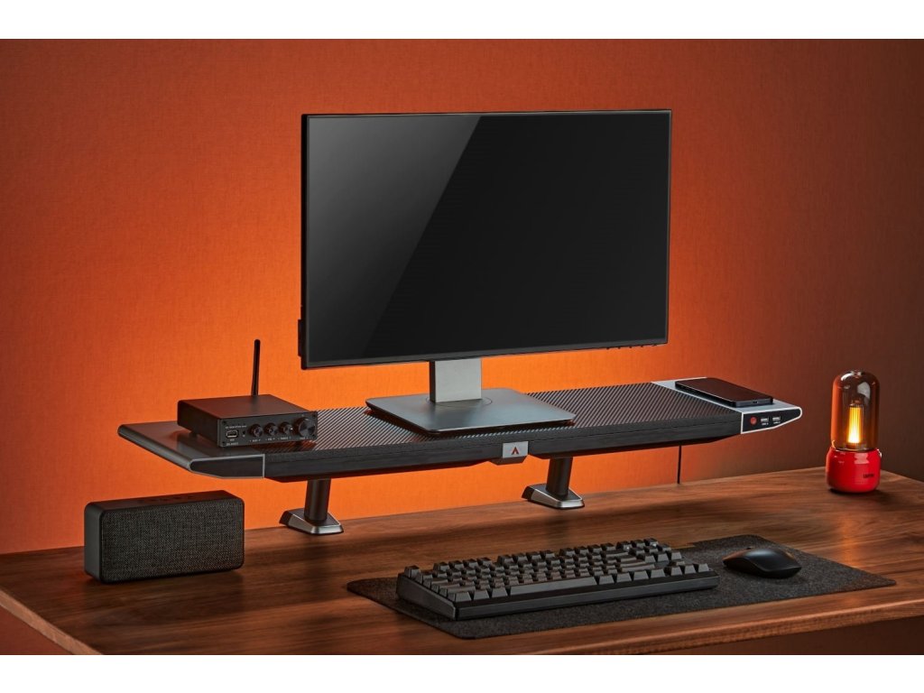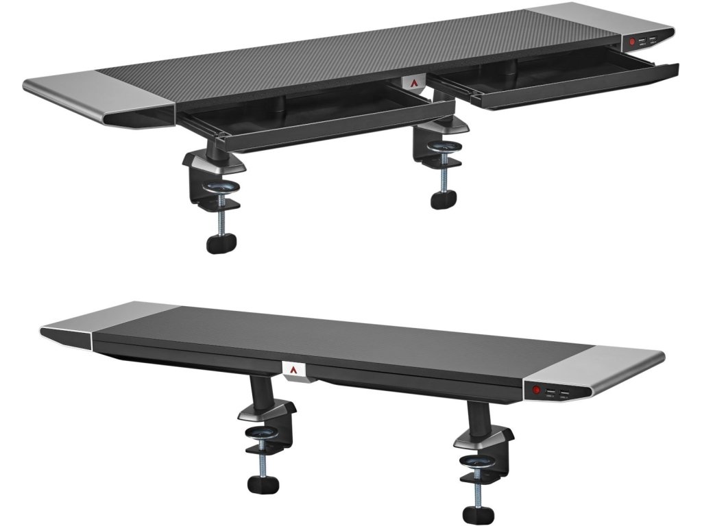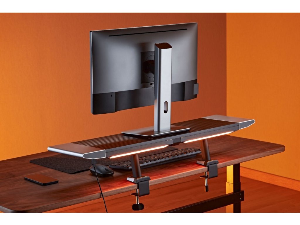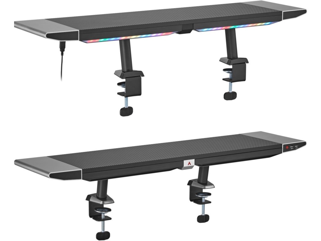 Podstawka pod monitor dla graczy z podświetleniem RGB, o nośności 20 kg, z szufladą na drobne akcesoria i portami USB: 2 porty USB 2.0 / 2 porty USB 3.0.
