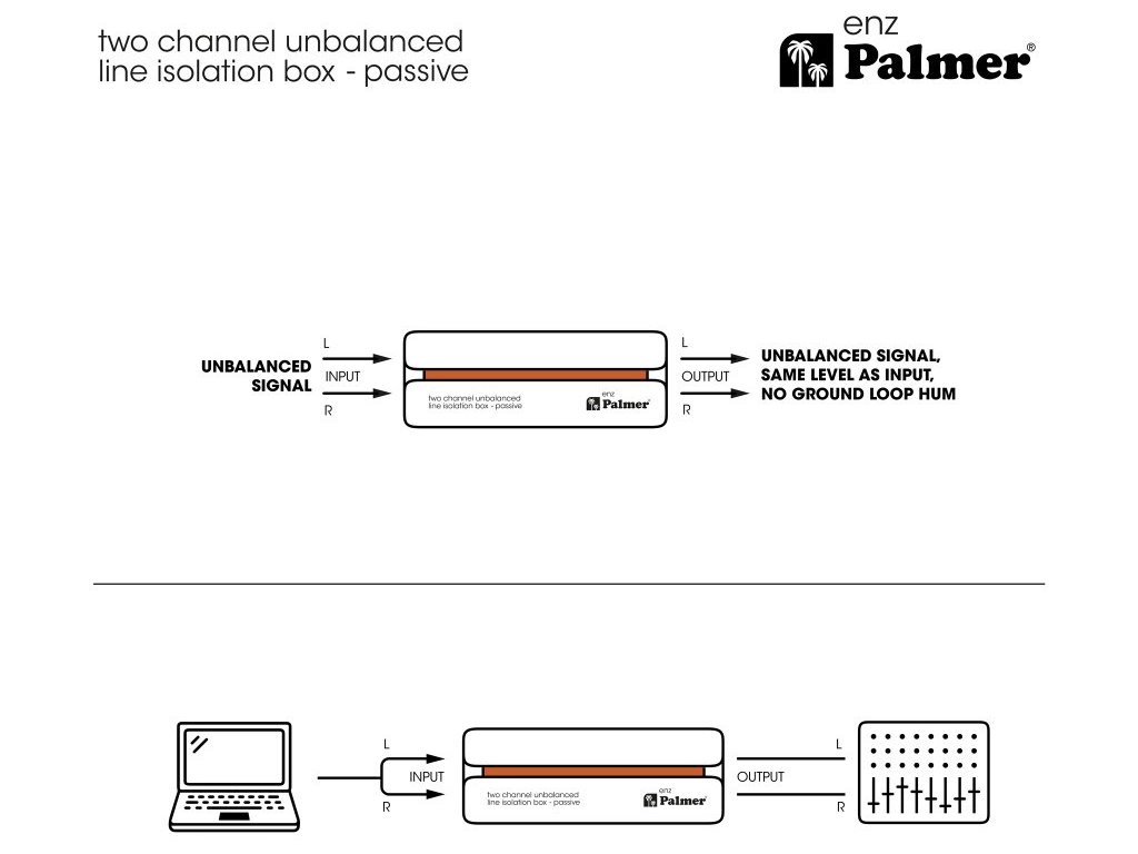 Przyczyną tych zakłóceń są zazwyczaj różne potencjały uziemienia, które prowadzą do prądów wyrównawczych przez linie audio. Pomocny może być transformator, który oddziela przewód uziemiający między oboma urządzeniami. Palmer enz ma dwa takie transformatory separacyjne, ponieważ ma konstrukcję dwukanałową. Ich wejścia i wyjścia są rozwiązane jako gniazda RCA, jak to jest powszechne w sprzęcie hi-fi i konsumenckim. Ich jakość dźwięku zadowoli nawet profesjonalistów, ponieważ dźwięk pozostaje niezafałszowany.
