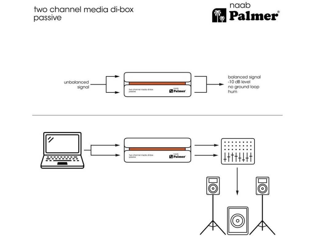 Dzięki pasywnemu sposobowi działania Palmer naab nie wymaga zasilania, co czyni go wyjątkowo bezpiecznym, zwłaszcza że solidna metalowa obudowa dużo wytrzyma. Palmer naab to as w rękawie dla każdego muzyka w trasie lub realizatora dźwięku.