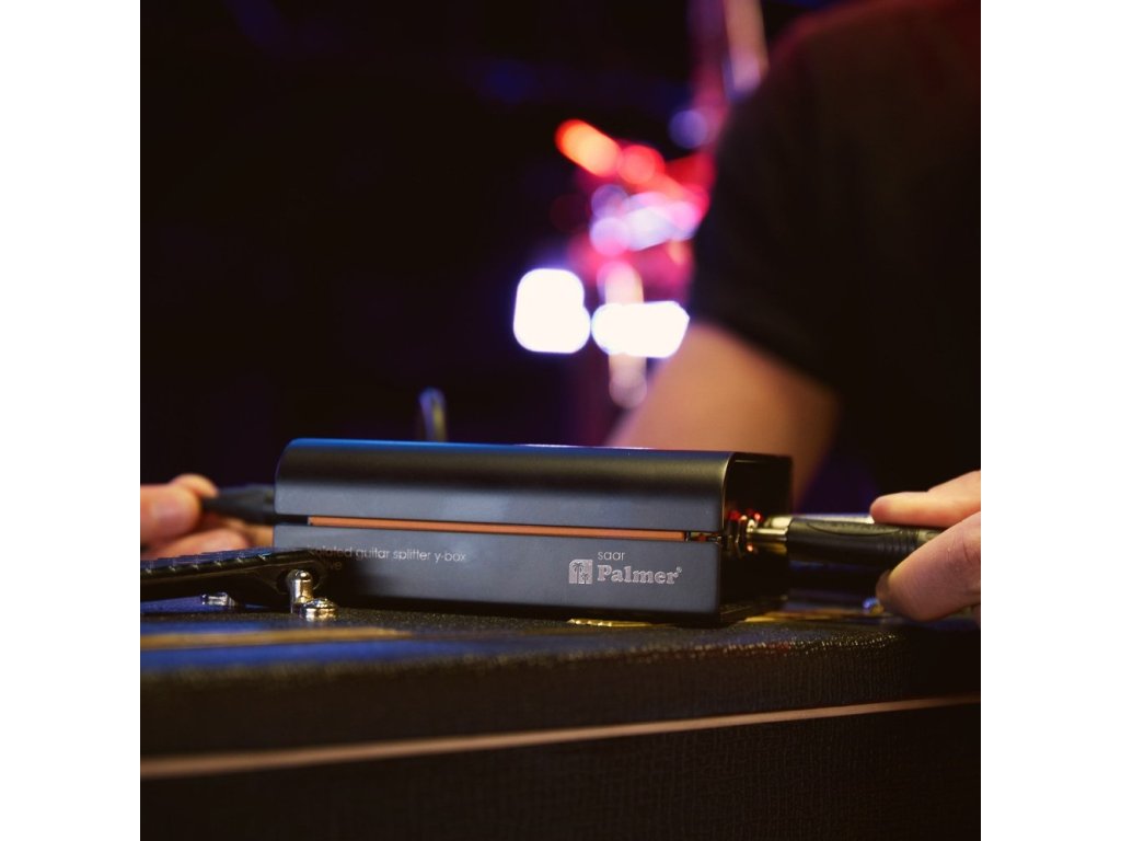 Chcesz grać na gitarze lub gitarze basowej przez dwa wzmacniacze jednocześnie? Świetny pomysł! Problem w tym, że to szumi. I to nie tylko trochę. W rzeczywistości robi niezły hałas. Na szczęście jest pudełko Palmer saar Guitar Splitter, które to uratuje. Saar oddziela potencjały uziemienia obu wzmacniaczy i zapobiega brumieniu pętli uziemienia przy łączeniu wielu wzmacniaczy. Palmer saar pasywnie przesyła sygnał wejściowy do wyjścia wzmacniacza 1, podczas gdy aktywny przełącznik FET odgałęzia sygnał do wyjścia wzmacniacza 2. Dzieje się to bez utraty dźwięku, ponieważ poziom wejściowy FET ma ekstremalnie wysoką impedancję. Wyjście wzmacniacza 2 jest również oddzielone od obwodu uziemienia transformatorem. Pętle uziemienia można oddzielić, naciskając przełącznik ground lift. Sygnał z wyjścia wzmacniacza 2 ma niską impedancję i jest niezawodny, dzięki czemu możliwe są również dłuższe trasy kablowe bez utraty dźwięku. Ważną funkcją jest przełącznik odwrócenia fazy dla drugiego wyjścia. Polaryzacja sygnału wzmacniaczy gitarowych/basowych nie jest standaryzowana. Dwa jednocześnie działające wzmacniacze mogą być w fazie lub poza fazą. W drugim przypadku dźwięk jest nieprzyjemnie cienki - co można rozwiązać, naciskając przełącznik odwrócenia fazy na Palmer saar. Jeśli chcesz, możesz oczywiście użyć funkcji odwracania fazy jako narzędzia do projektowania dźwięku: dźwięk w przeciwfazie może być czasami świetną, kreatywną opcją! Palmer saar to proste i skuteczne narzędzie, które pozwala cieszyć się niesamowitym brzmieniem dwóch wzmacniaczy jednocześnie - bez żadnych szumów i zakłóceń.