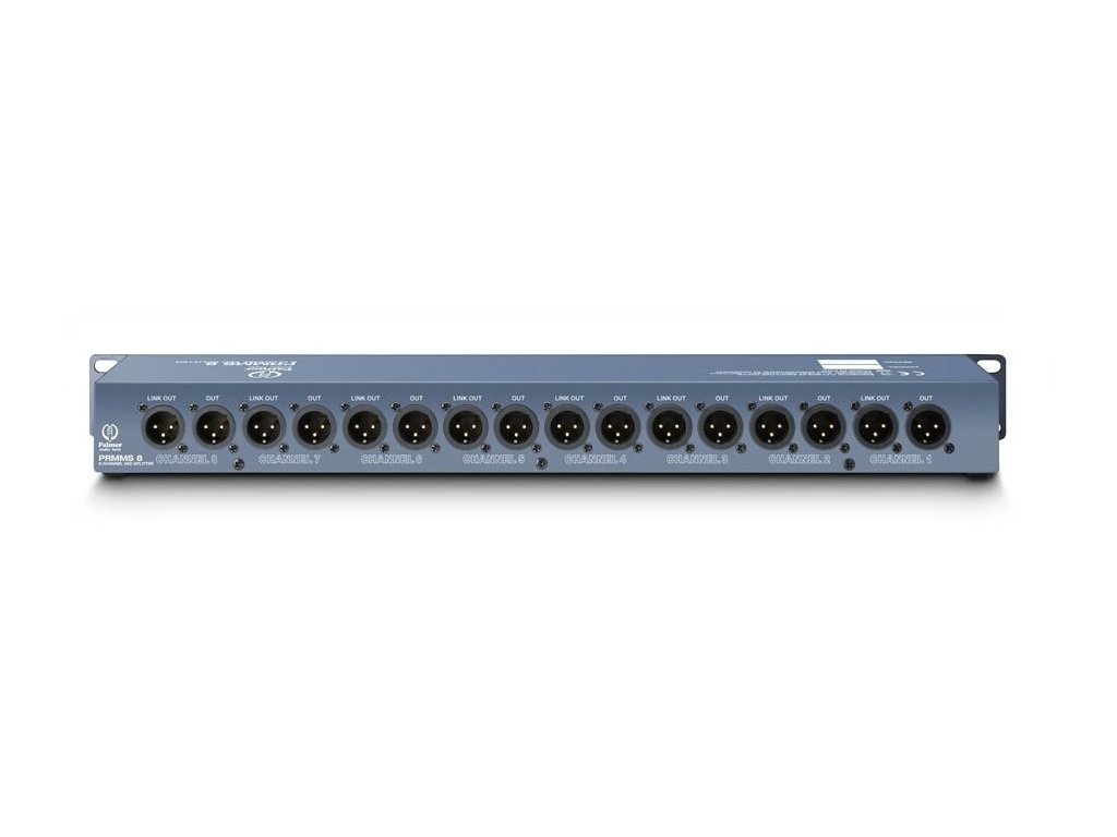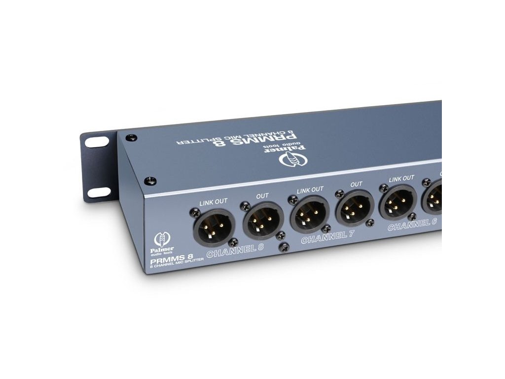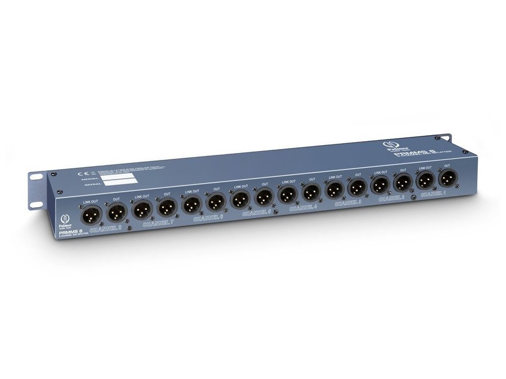 PRMMS8 to wyjątkowo cichy 19-calowy splitter mikrofonowy z 8 symetrycznymi wejściami XLR, z których każde jest prowadzone do wyjścia bezpośredniego i wyjścia izolowanego transformatorem. Dla elastycznego zastosowania cztery przełączniki LINK z przodu umożliwiają łączenie dwóch kanałów. Umożliwia to przekazywanie sygnału wejściowego przez cztery wyjścia do mikserów dla FOH, monitoringu, nagrywania i transmisji radiowej lub łączenie dwóch sygnałów wejściowych w jeden sygnał wyjściowy. Mikrofony pojemnościowe mogą być zasilane napięciem fantomowym przez wyjścia bezpośrednie. Każdy kanał jest wyposażony w Ground-Lift, aby zapobiec pętlom uziemienia i zakłóceniom, które mogą powstać w wyniku podwójnego uziemienia podłączonych zasilaczy.