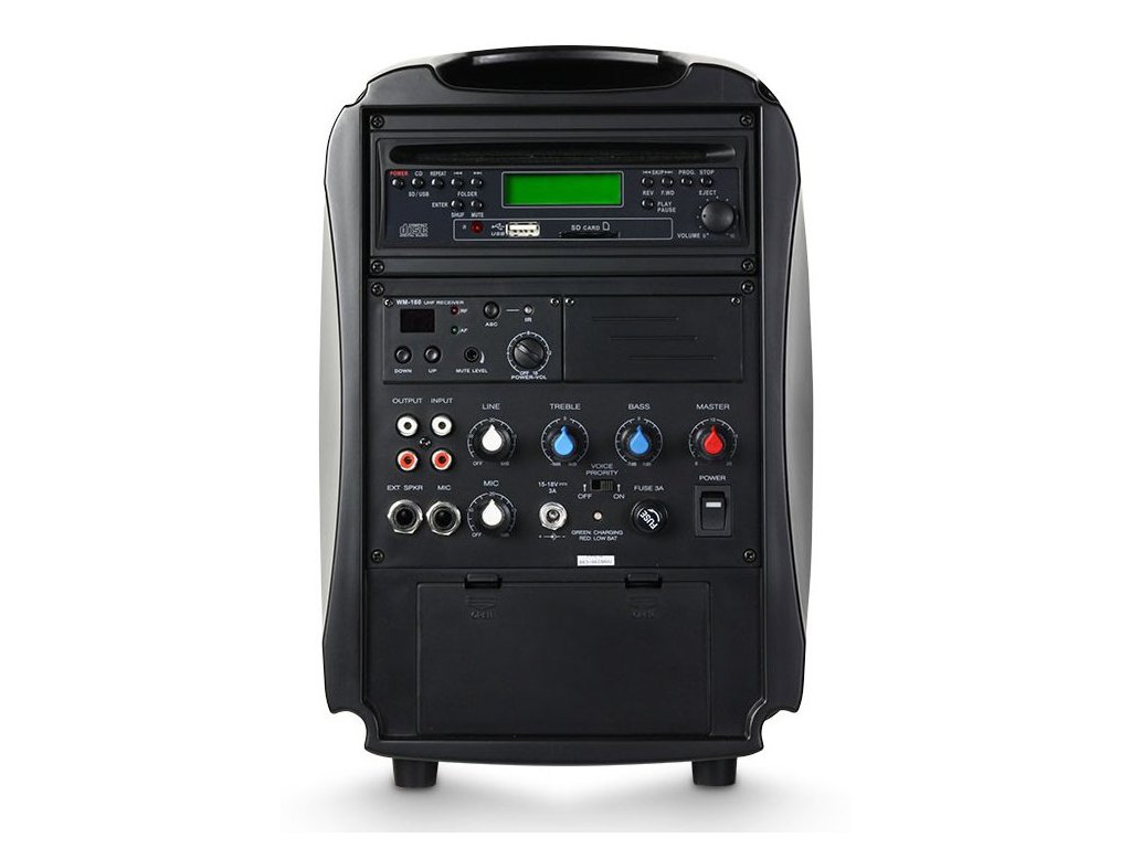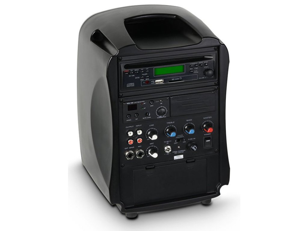 LD Systems LDRB65HS to przenośny aktywny zestaw głośnikowy z odtwarzaczem CD/MP3 i interfejsem USB, który może nagłośnić prezentacje i wykłady, występy szkolne lub imprezy. „Kieszonkowe” wymiary 30x22cm i waga 5kg bardzo ułatwiają transport, a zestaw głośnikowy wcale nie jest mały – maksymalne ciśnienie akustyczne wynosi 105dB, co jest wynikiem współpracy 6,5-calowego głośnika i wzmacniacza o mocy 30W RMS. Dodatkowo funkcje uzupełnia praktyczny odtwarzacz CD/MP3 i interfejs USB oraz bezprzewodowy mikrofon nagłowny – do nagłośnienia małych pomieszczeń nie potrzebujesz już niczego innego. Praktyczna jest również funkcja Voice Priority, która automatycznie ścisza muzykę podczas mówienia do mikrofonu. Jako prawidłowe urządzenie przenośne, LDRB65HS może również pracować na baterii, czas pracy wynosi do 4 godzin.