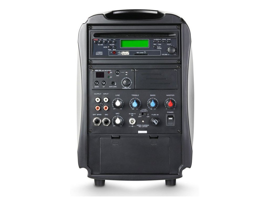 LD Systems LDRB65 to przenośny aktywny zestaw głośnikowy z odtwarzaczem CD/MP3 i interfejsem USB, zdolny do nagłośnienia prezentacji i wykładów, występów szkolnych lub imprez. „Kieszonkowe” wymiary 30x22cm i waga 5kg bardzo ułatwiają transport, a zestaw głośnikowy wcale nie jest mały – maksymalne ciśnienie akustyczne wynosi 105dB, co jest wynikiem współpracy 6,5” głośnika i wzmacniacza o mocy 30W RMS. Dodatkowo funkcje uzupełnia praktyczny odtwarzacz CD/MP3 i interfejs USB oraz bezprzewodowy mikrofon do ręki (WS1601MD) – do nagłośnienia małych pomieszczeń nie potrzebujesz nic więcej. Praktyczna jest również funkcja Voice Priority, która automatycznie ścisza muzykę podczas mówienia do mikrofonu. Jako prawidłowe urządzenie przenośne, LDRB65 może również pracować na baterii, żywotność baterii wynosi do 4 godzin.