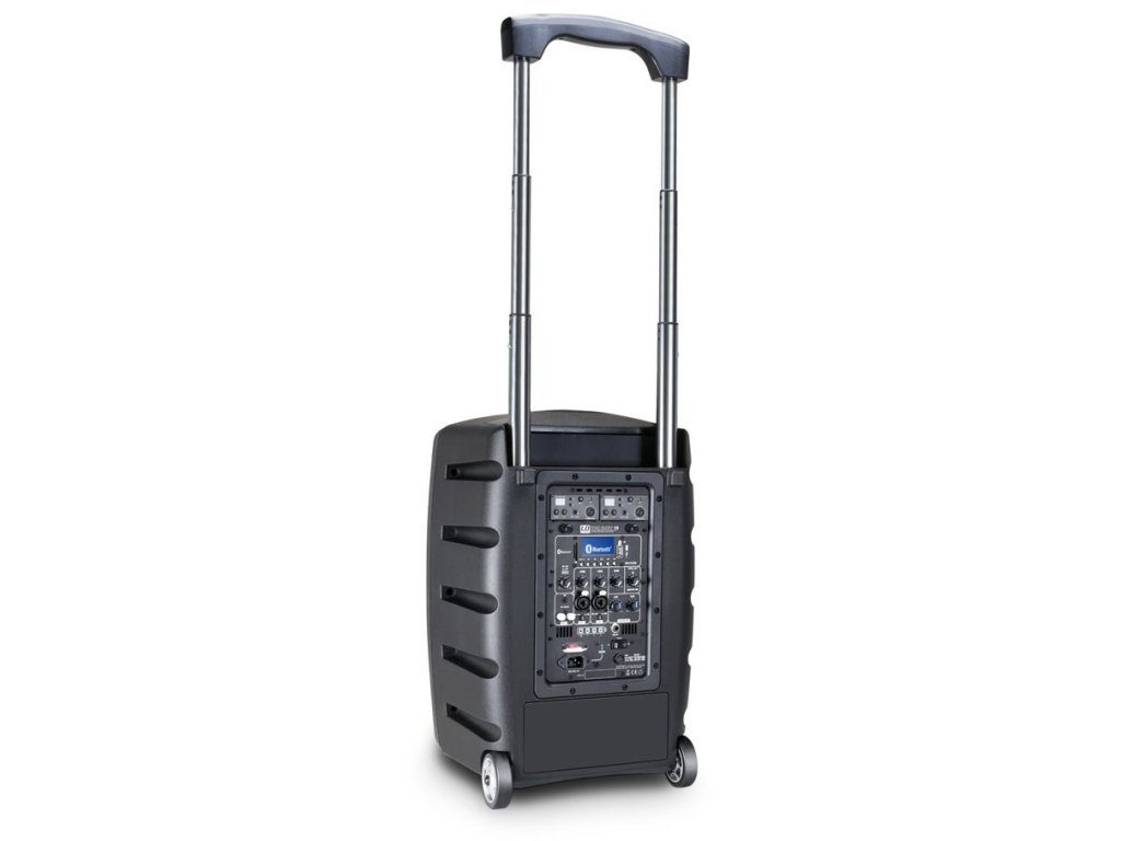 LD Systems Roadbuddy jest łatwy w transporcie dzięki wbudowanym kółkom obrotowym i wysuwanej rączce. Na górze znajduje się praktyczny schowek na maksymalnie dwa ręczne mikrofony nadawcze. Plastikowa obudowa tego lekkiego urządzenia została skonstruowana tak, aby pomieścić 35 mm uchwyt statywu.