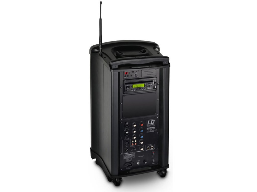 Roadman 102 to wydajny, mobilny system PA, który można zasilać za pomocą akumulatorów, dzięki czemu można go używać nawet w miejscach bez dostępu do sieci elektrycznej. Można do niego podłączyć dwa mikrofony lub instrumenty, a do odtwarzania muzyki lub podkładów służy wbudowany odtwarzacz CD z wejściem USB i SD. Do bezprzewodowej transmisji kolumna wyposażona jest w odłączaną antenę UHF. W skład tego zestawu wchodzi mikrofon nagłowny z nadajnikiem kieszonkowym.