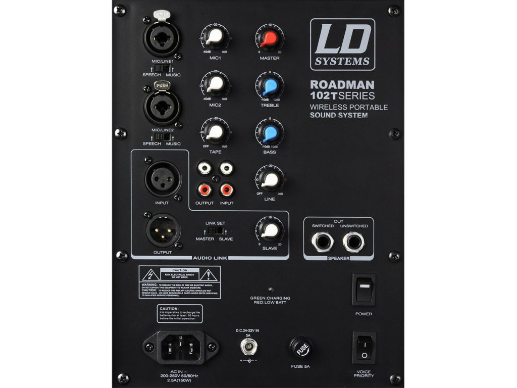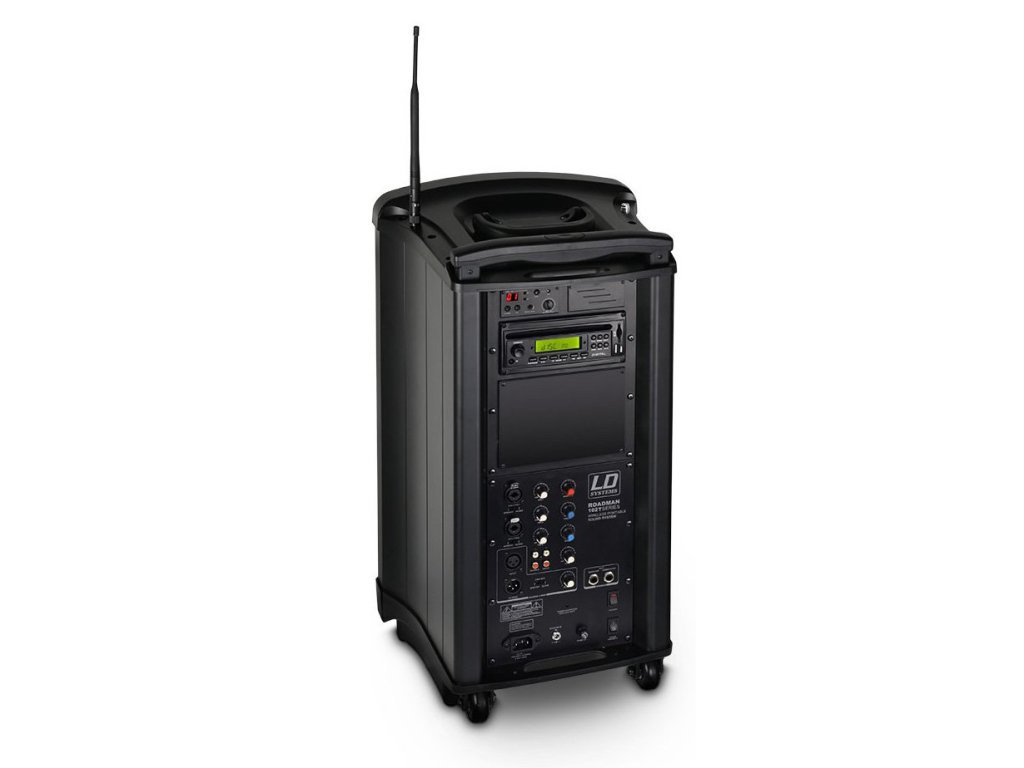 Roadman 102 to wydajny, mobilny system PA, który można zasilać za pomocą akumulatorów, dzięki czemu można go używać nawet w miejscach bez dostępu do sieci elektrycznej. Można do niego podłączyć dwa mikrofony lub instrumenty, a do odtwarzania muzyki lub podkładów służy wbudowany odtwarzacz CD z wejściem USB i SD. Do bezprzewodowej transmisji kolumna wyposażona jest w odłączaną antenę UHF. Częścią tego zestawu jest ręczny mikrofon dynamiczny.