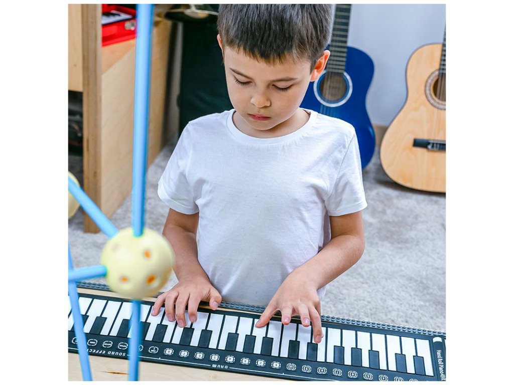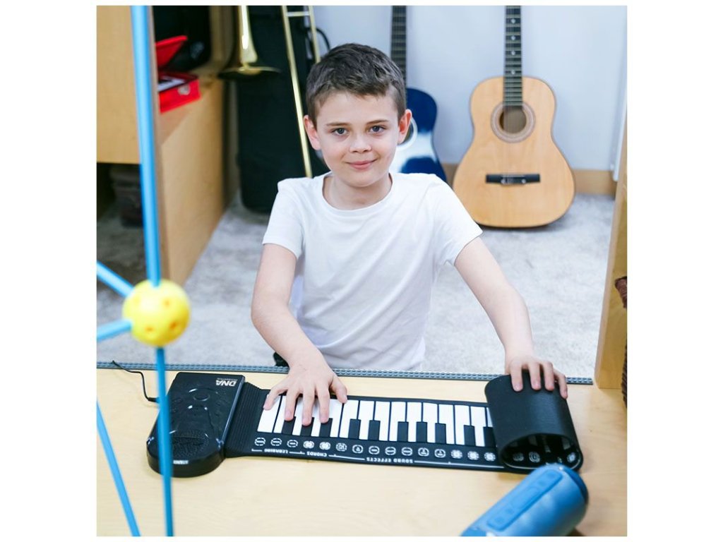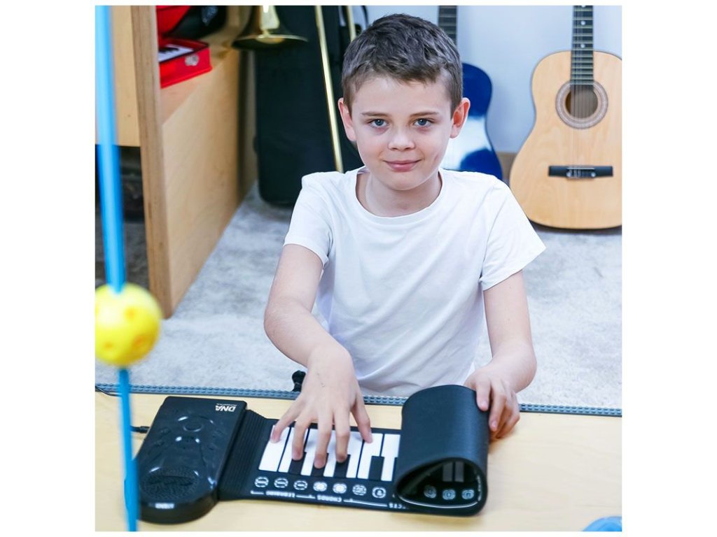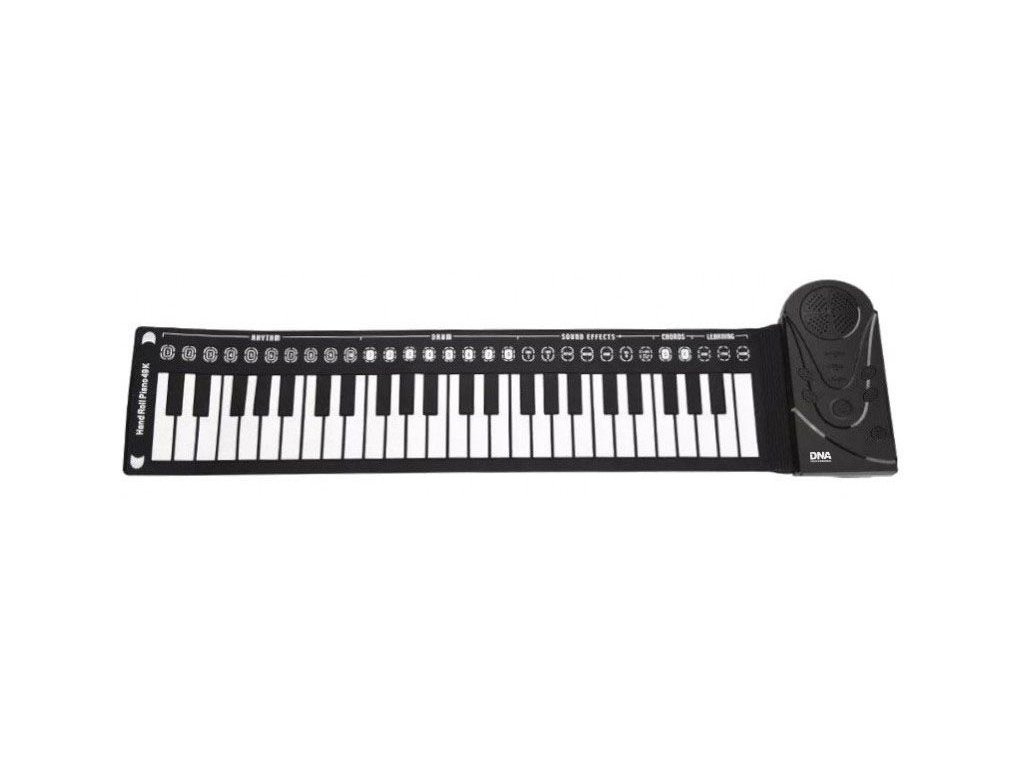 DNA ROLL 49 to cyfrowa, składana klawiatura, która jest idealnym narzędziem do nauki i zabawy dźwiękiem. Możesz zabrać ją ze sobą na wakacje, używać w podróży lub po prostu w domu. Zwinięta klawiatura jest elastyczna, zajmuje mało miejsca, a po rozłożeniu dopasowuje się do kształtu powierzchni, na której leży.