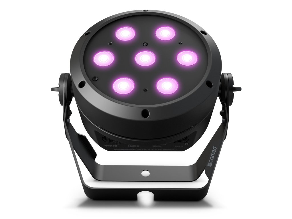 Cameo ROOT PAR 4 BK to wysokowydajny reflektor punktowy wyposażony w zaawansowaną, opatentowaną technologię EZchase®, która minimalizuje opóźnienia w transmisji DMX i znacznie upraszcza sterowanie reflektorem za pomocą oprogramowania i kontrolera DMX. Wewnątrz wytrzymałej konstrukcji ABS znajduje się siedem wysokowydajnych diod 4W RGBW LED, tworzących optymalną mieszankę kolorów i wspaniałe oświetlenie dla klubów muzycznych, dużych scen, przyjęć urodzinowych lub sal tanecznych. Reflektor jest prawie bezgłośny dzięki wysoce wydajnemu chłodzeniu.