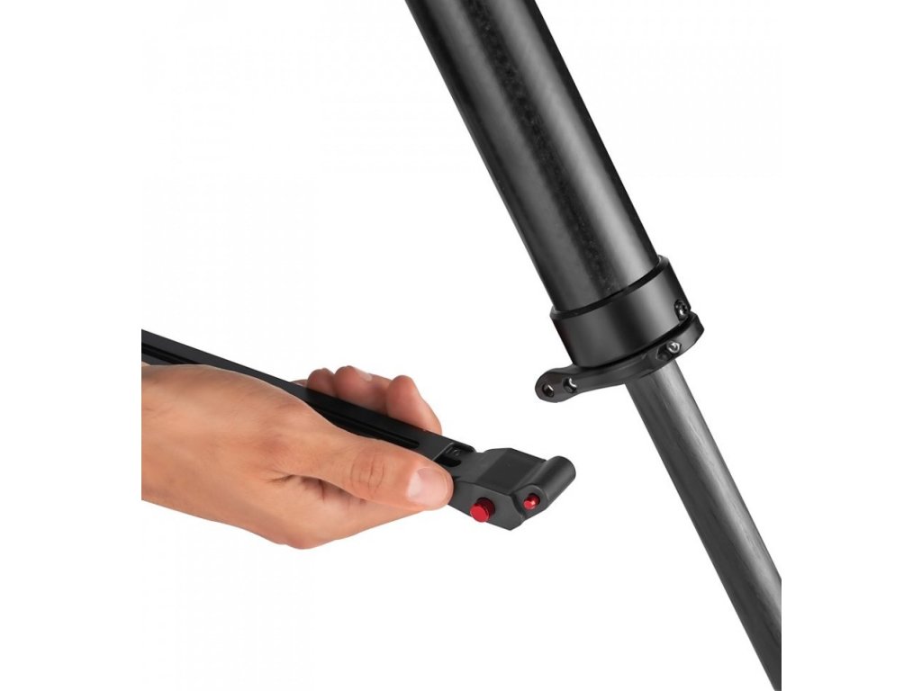 Nowy Manfrotto Middle Spreader dzięki teleskopowym ramionom umożliwia precyzyjne ustawienie kątów nóg, a tym samym uzyskanie żądanego śladu statywu.