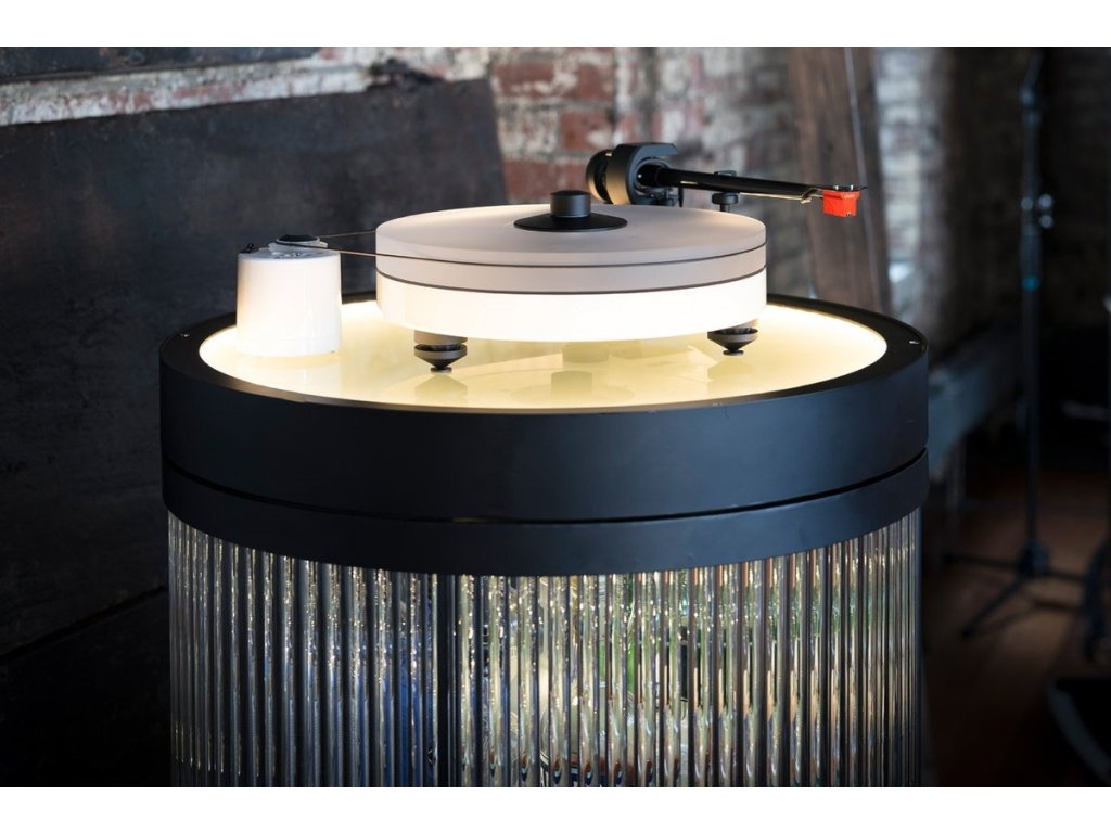 Dominujący jest również ciężki akrylowy talerz z zerową rezonancją i odwróconym łożyskiem z osadzoną ceramiczną kulką w celu minimalizacji tarcia.