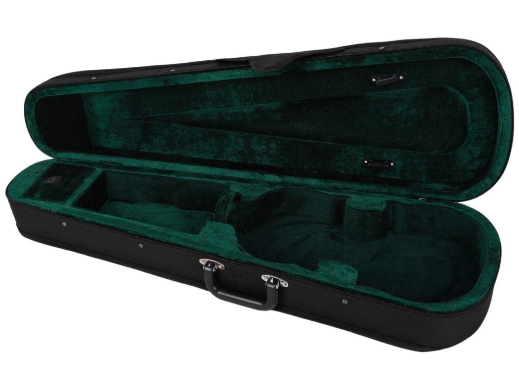 Futerał na skrzypce 4/4 ma lekką, ale wytrzymałą konstrukcję z zewnętrzną kieszenią, dwoma paskami na ramię i solidnym uchwytem. Powierzchnia jest pokryta poliestrem, a stabilne zamknięcie zapewnia podwójny zamek błyskawiczny. Wewnętrzna część jest wyłożona aksamitem i skrywa przegródkę na akcesoria oraz uchwyt na smyczek.
