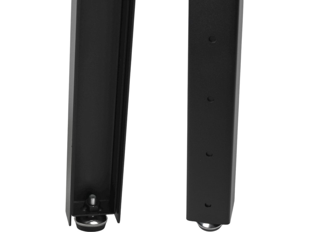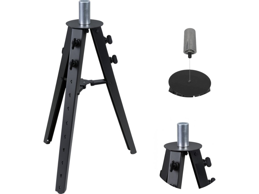 Statyw posiada 10 poziomów regulacji wysokości, co umożliwia idealne umiejscowienie sprzętu. Intuicyjny mechanizm z obrotowymi śrubami pozwala na szybką regulację nawet podczas imprezy. Rozpiętość nóg do 108 cm zapewnia optymalną równowagę, a średnica rury 32 mm przyczynia się do stabilności całej konstrukcji.