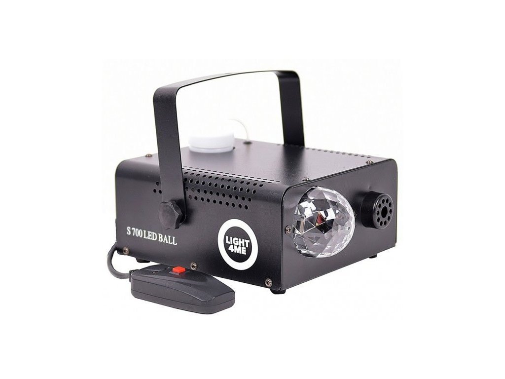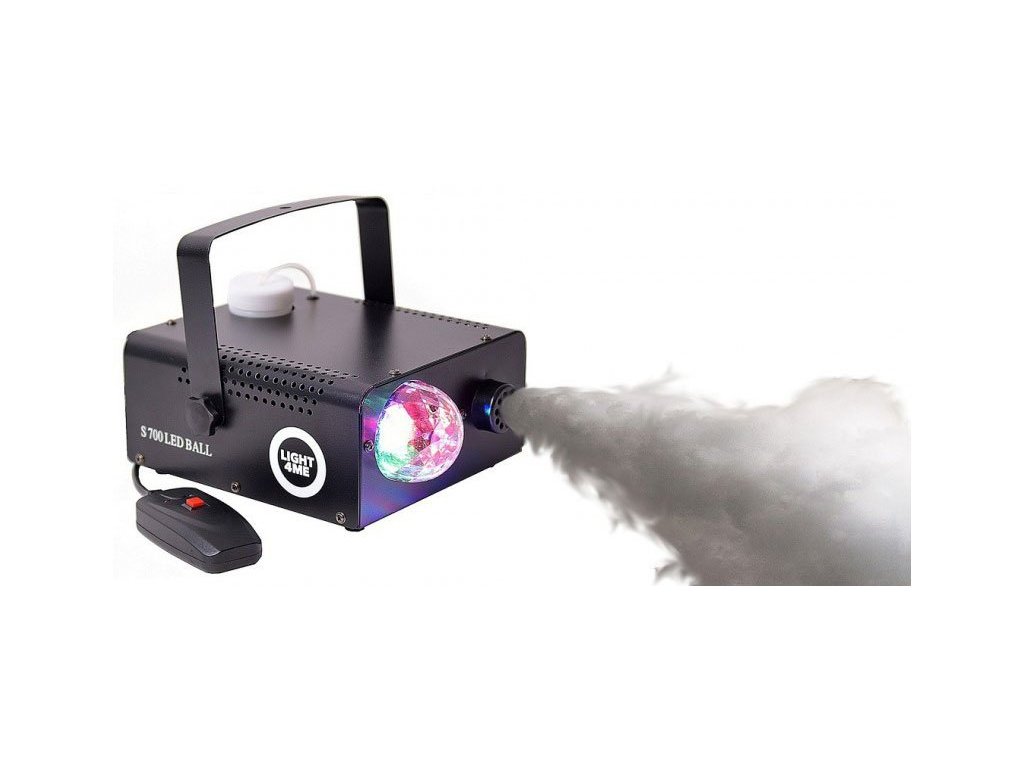 Light4me S700 LED BALL to najlepszy generator dla zespołów i DJ-ów, a także na wesela lub sale bankietowe. Dzięki wydajnemu podgrzewaczowi szybko się nagrzewa i jest gotowy do pracy w ciągu kilku minut. Wytwornica dymu S700 LB to również świetny dodatek na każdą specjalną okazję lub domowe przyjęcie. Kompaktowa konstrukcja, niewielka waga i małe wymiary ułatwiają transport w wybrane miejsce. Dodatkowo urządzenie zostało wyposażone w efekt świetlny disco. W rezultacie generator staje się bardziej atrakcyjny i efektywny.