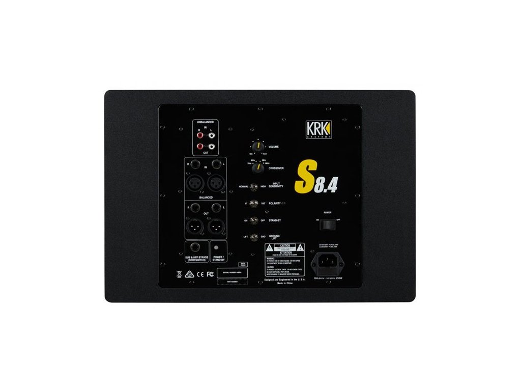 KRK S8.4 to kompaktowy i precyzyjny dźwiękowo aktywny subwoofer z 8-calowym głośnikiem zasilanym wzmacniaczem klasy D o mocy 109 W.
