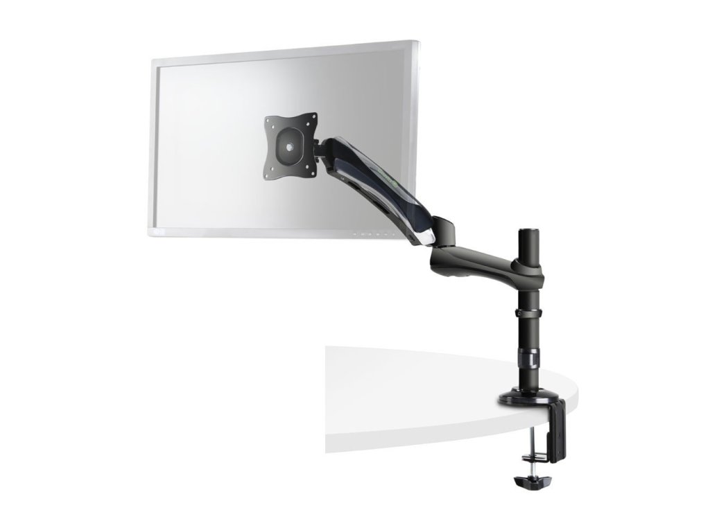 SA 6131 B to eleganckie, stalowe i odlewane ciśnieniowo ramię aluminiowe do montażu monitora. Jest regulowany we wszystkich kierunkach i ma pomysłową konstrukcję przeciwwagi, która ułatwia regulację wysokości ekranu. Zintegrowany system zarządzania kablami zapewnia czystą i przejrzystą instalację. Ramię producenta jest dostarczane ze zaciskiem stołowym i przelotką dla szerokiej gamy bezpiecznych opcji montażu.