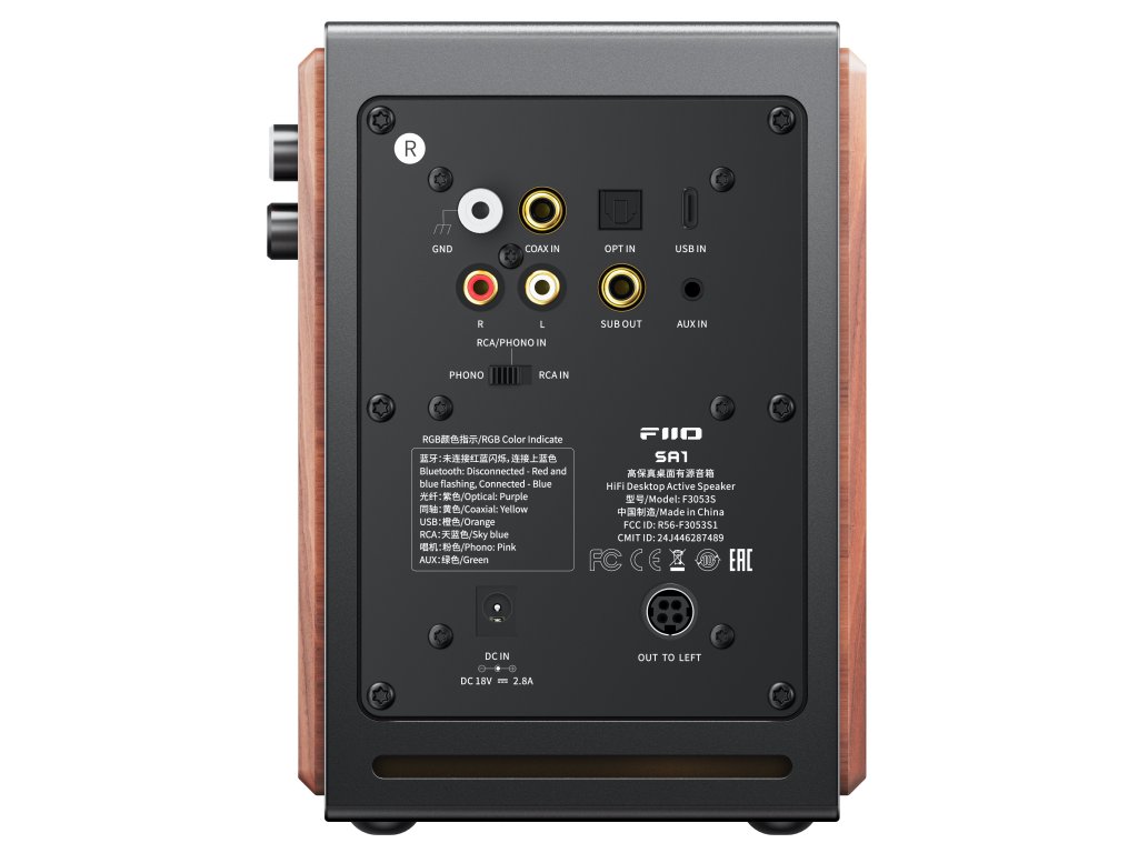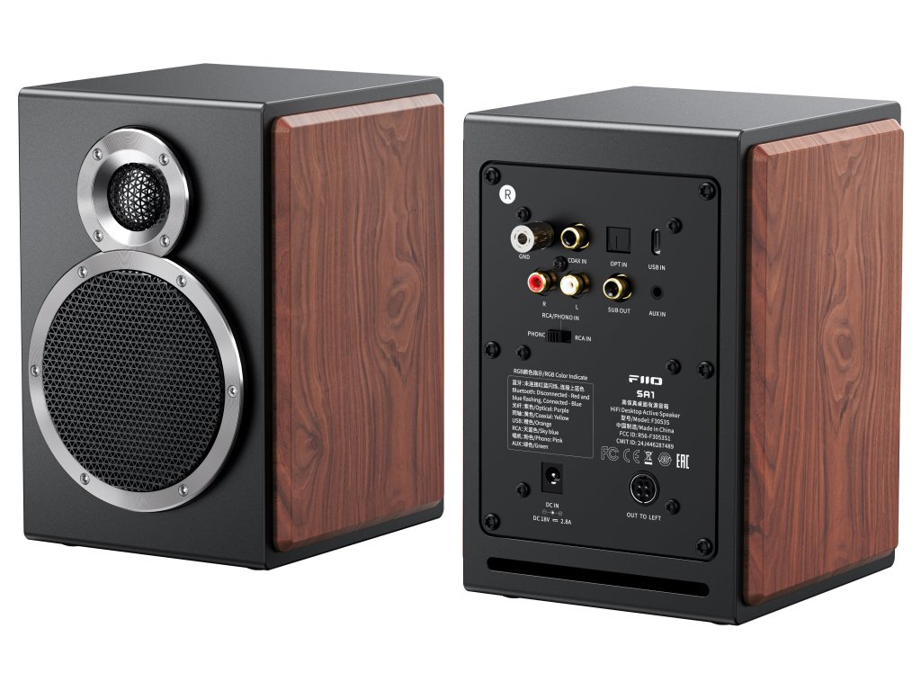 Wewnątrz głośników SA1 znajduje się 3,5" woofer z włókna drzewnego i ¾" tweeter ze stopu aluminium i magnezu, które wspólnie zapewniają czysty, dynamiczny i naturalny dźwięk. Za moc odpowiada czterokanałowy wzmacniacz Texas Instruments o mocy 20 W + 20 W + 5 W + 5 W. Aktywna elektroniczna dwudrożna zwrotnica zapewnia precyzyjne oddzielenie częstotliwości, co przyczynia się do doskonałej zrozumiałości i żywego odwzorowania przestrzeni. Sterowanie odbywa się za pomocą fizycznych pokręteł bezpośrednio na obudowie, a w zestawie znajduje się również dopasowany pilot na podczerwień dla maksymalnego komfortu. FiiO SA1 zapewnia wyjątkowy dźwięk i uniwersalne zastosowanie w eleganckim wydaniu.