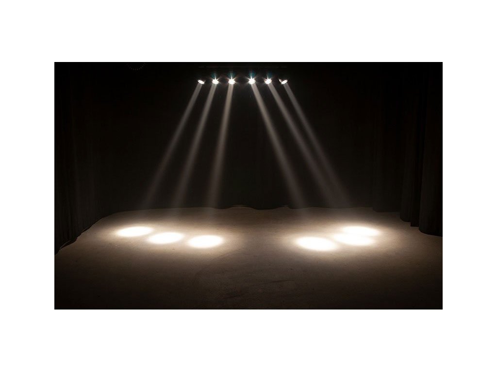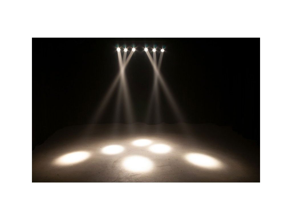 Sabre Bar 6 to 6-punktowy system oświetlenia pinspot zamontowany na liniowej podstawie o długości 1 m z wbudowanym przyłączem zasilania i DMX. Każdy pinspot jest wyposażony w 15W ciepłą białą diodę LED (3100K) i obiektyw ACL, który wytwarza 4-stopniową wiązkę. Każda oś X / Y oprawy może być indywidualnie ręcznie regulowana dla precyzyjnego nachylenia wiązek. Do mocowania oprawy do sufitu lub kratownicy służą dwa regulowane uchwyty.