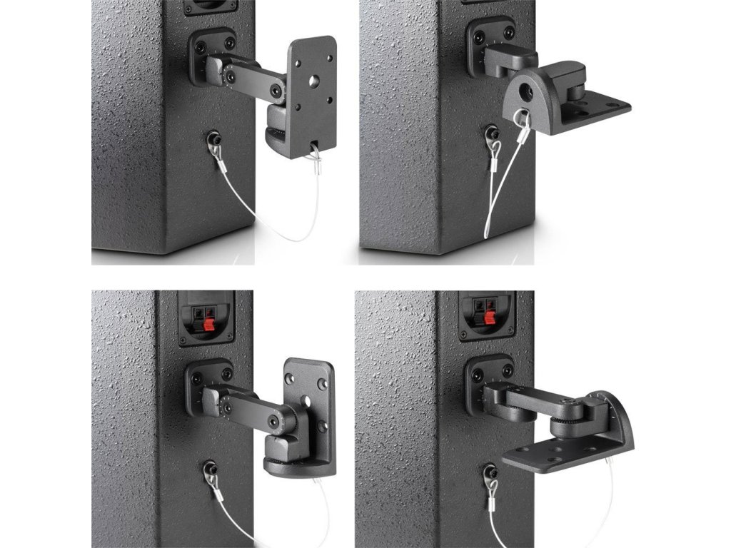 LDSATWMB10 jest w pełni regulowany we wszystkich osiach, dzięki czemu można go indywidualnie wypoziomować. Jest kompatybilny ze wszystkimi głośnikami SAT G2 i satelitami Dave 8, ale nadaje się również do bezpośredniego montażu w drewnianej lub plastikowej obudowie innych głośników.