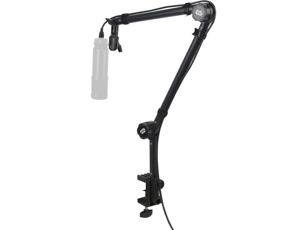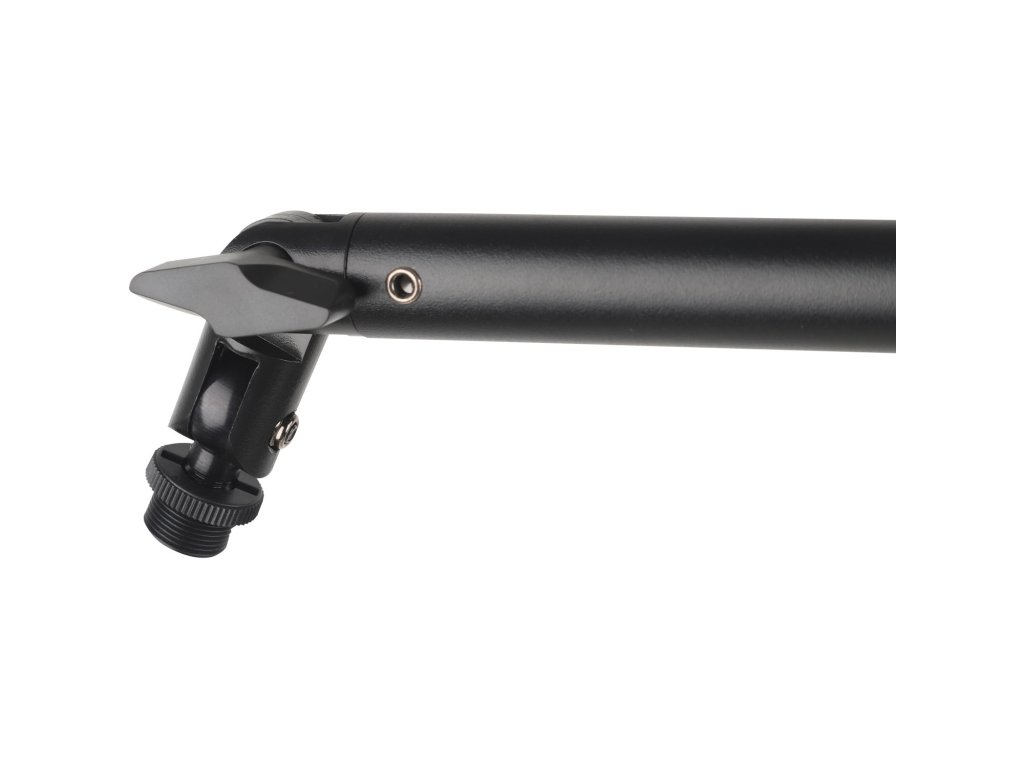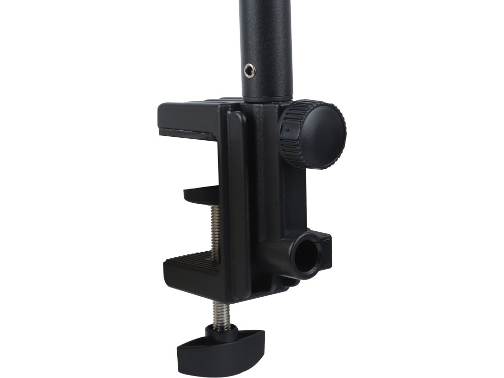 Dzięki kompaktowym wymiarom (350 x 380 x 105 mm) umożliwia elastyczne umieszczenie i precyzyjne ustawienie pozycji mikrofonu w dowolnym studiu lub środowisku domowym. Wysokiej jakości metalowa konstrukcja w połączeniu z wytrzymałym tworzywem ABS gwarantuje długą żywotność i odporność nawet przy intensywnym użytkowaniu. Solidny uchwyt pomieści stoły z blatem o grubości do 3,7 cm, co zapewnia bezpieczne i stabilne mocowanie.