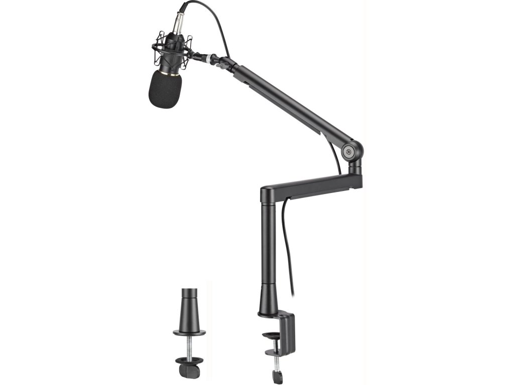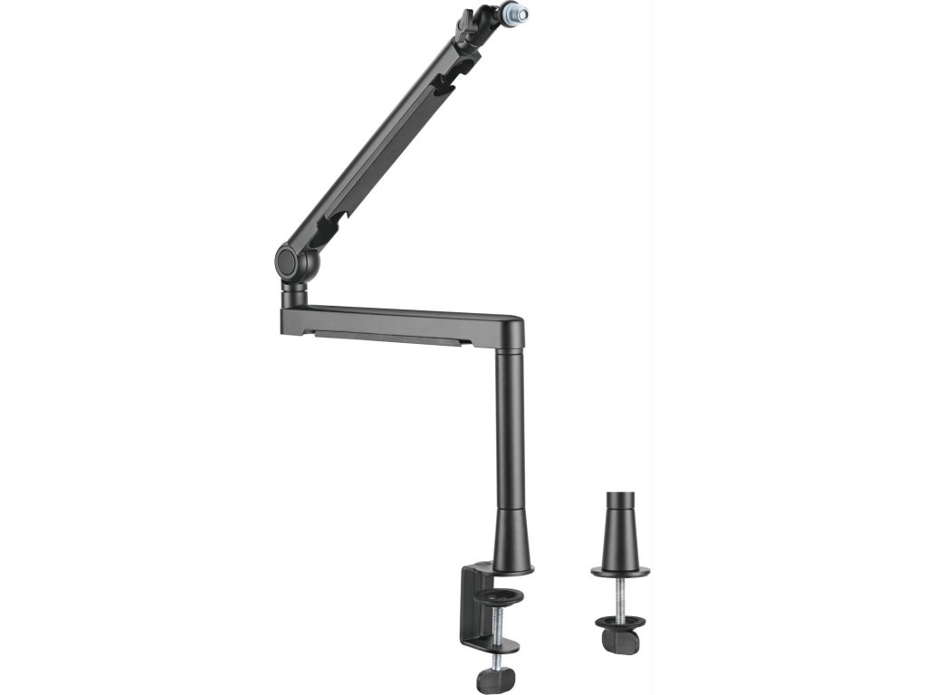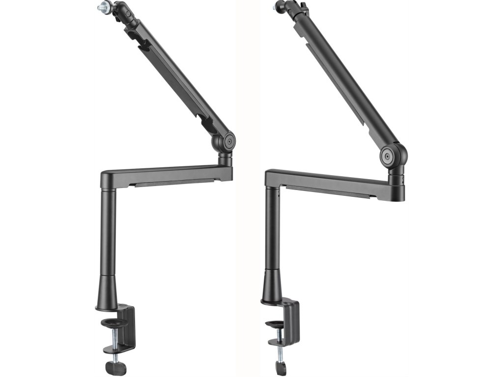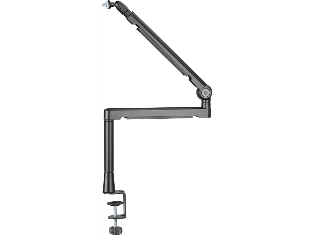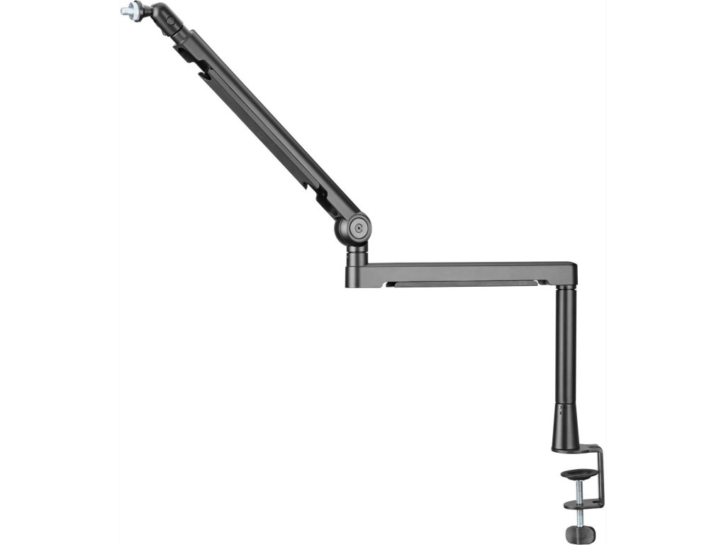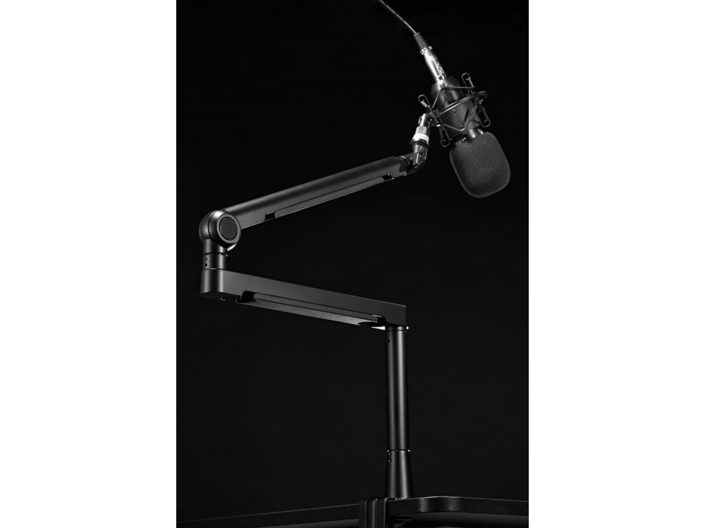 Ramię mikrofonowe o szerokiej kompatybilności, z wbudowanym organizerem kabli i możliwością obrotu ramienia o 360 stopni. Ramię można przymocować do krawędzi stołu o maksymalnej grubości blatu 6 cm, jak również do otworu w blacie. Zastosowany materiał: stal, plastik i aluminium. Gwint 3/8″ i 5/8″.