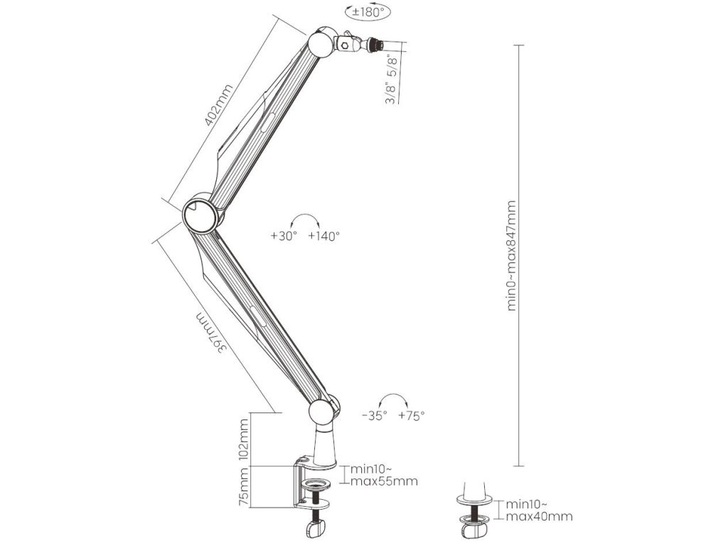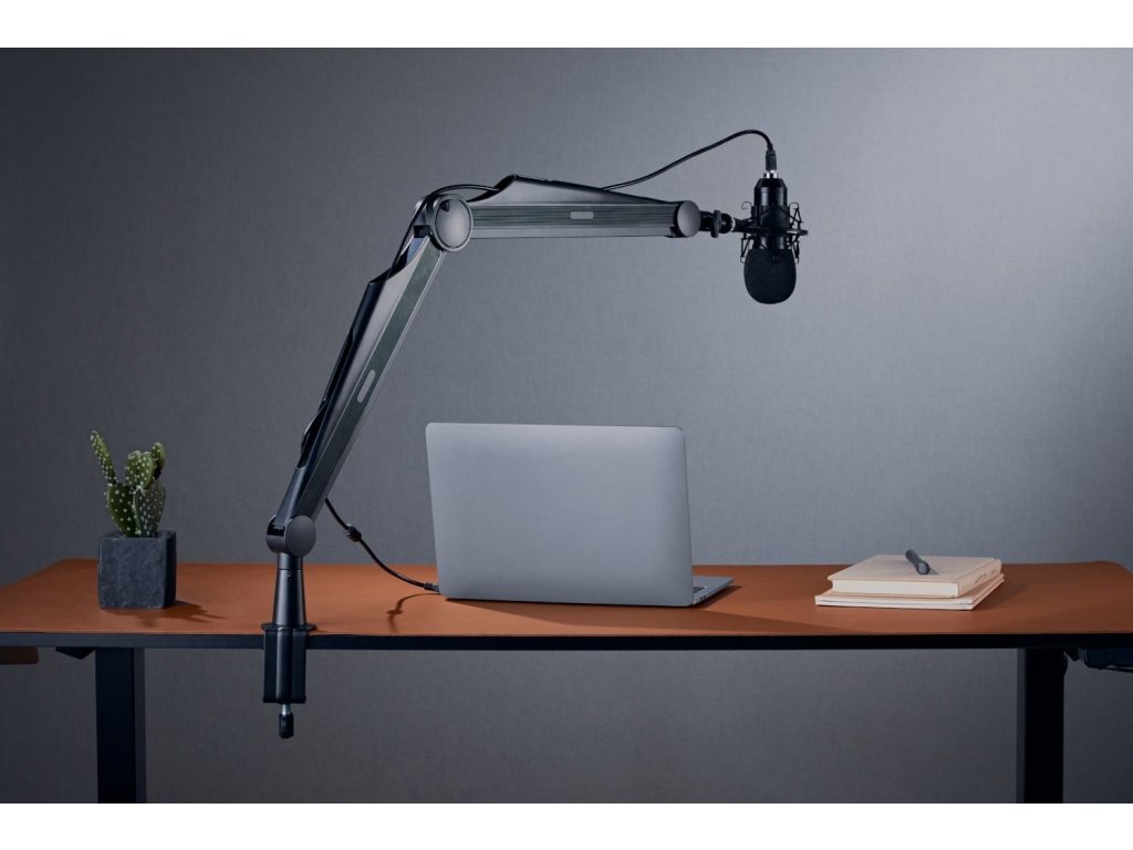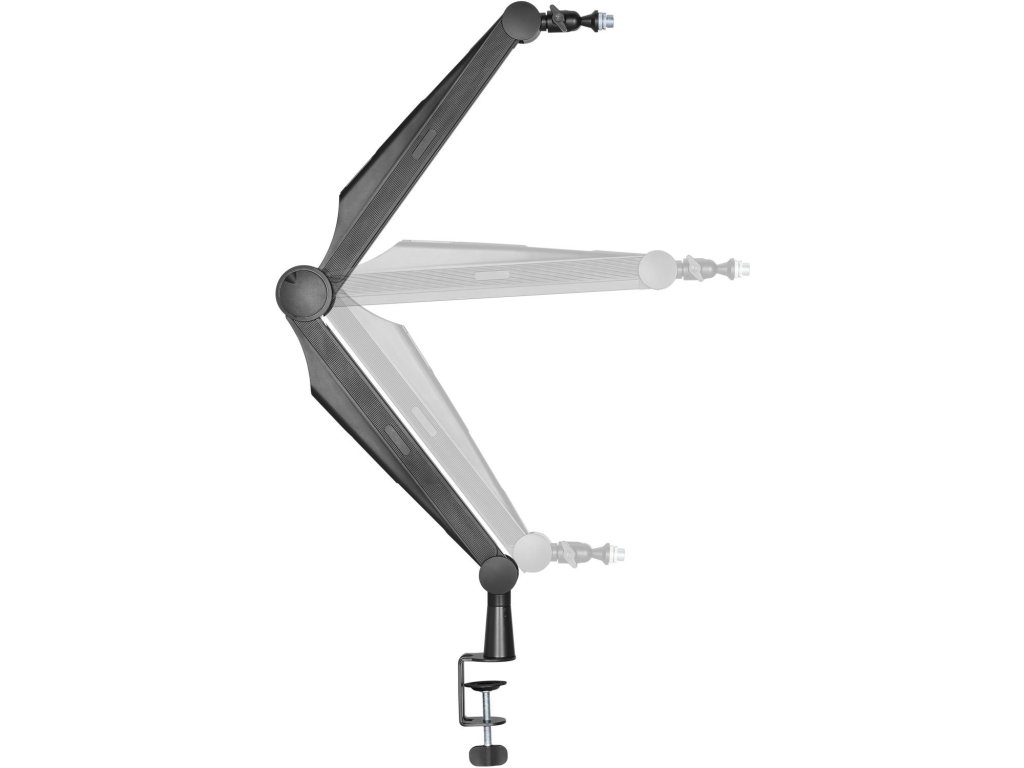 Mozos SB41 to praktyczny statyw mikrofonowy biurkowy z ramieniem mikrofonowym, który można przymocować do blatu o maksymalnej szerokości 5,5 cm. Oferuje szeroką kompatybilność (gwinty 3/8″ i 5/8″), możliwości regulacji i nośność 1 kg. Statyw składa się ze stalowych, aluminiowych i plastikowych części. Wymiary: 60 x 359 x 890 mm.
