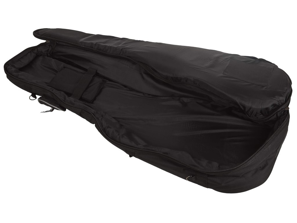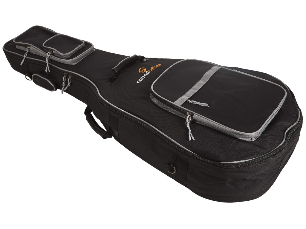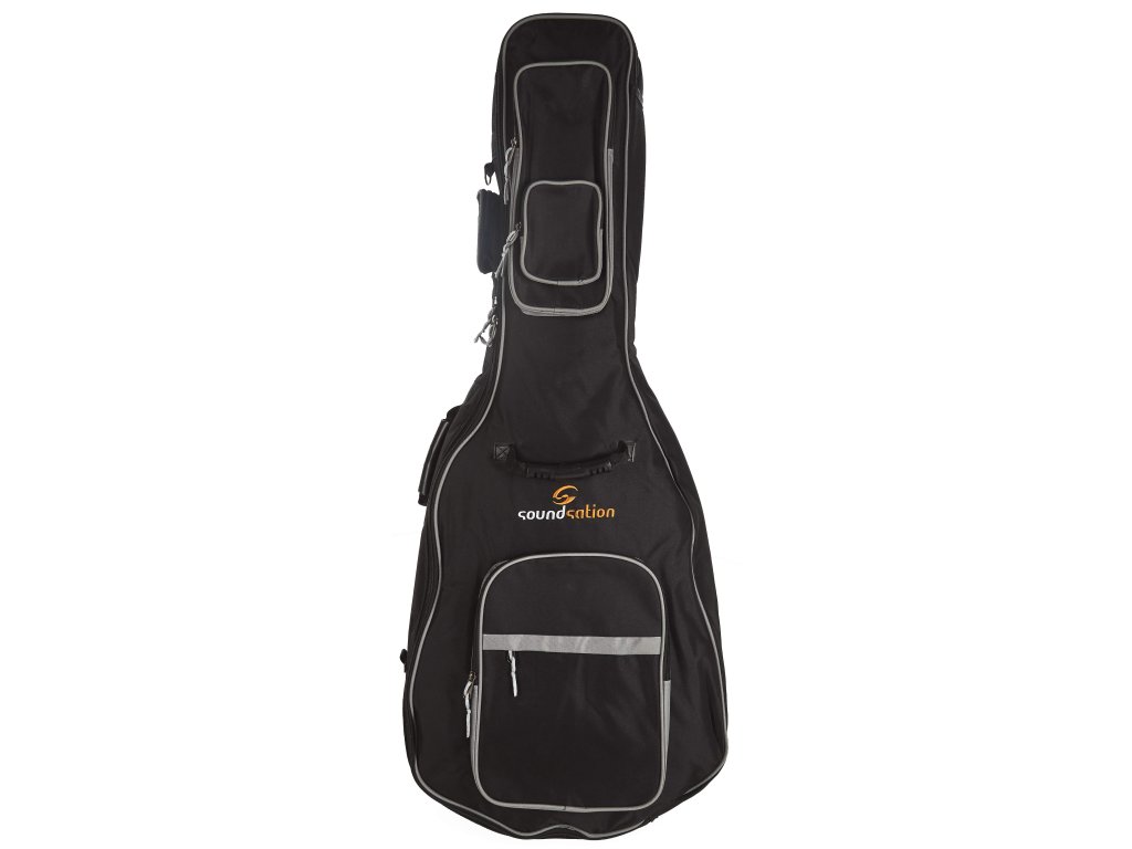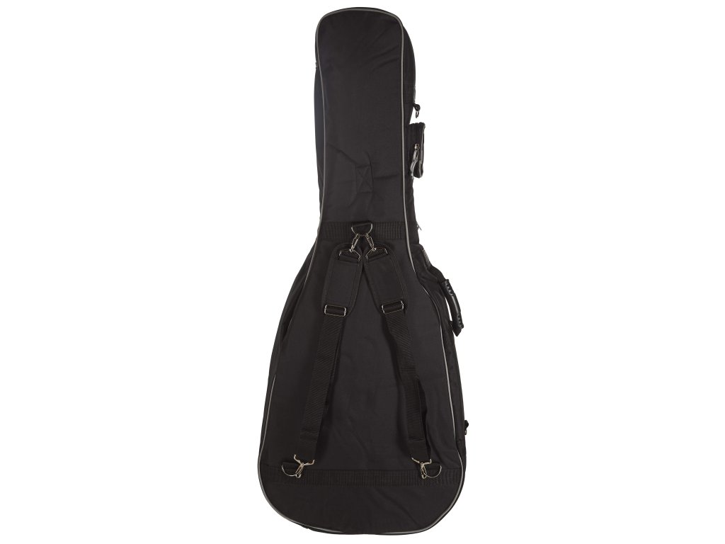 Ten pokrowiec na gitarę akustyczną jest wykonany z wytrzymałej tkaniny. Wysoki poziom ochrony instrumentu zapewnia wyściółka o grubości trzydziestu milimetrów. Wszystkie akcesoria można wygodnie przechowywać w trzech kieszeniach z przodu pokrowca i jednej bocznej. Oczywistością są regulowane paski na ramiona i ergonomiczny podwójny uchwyt.