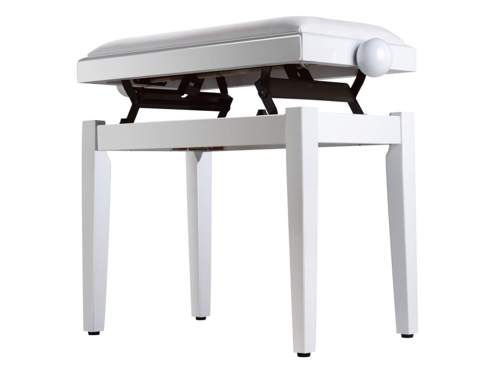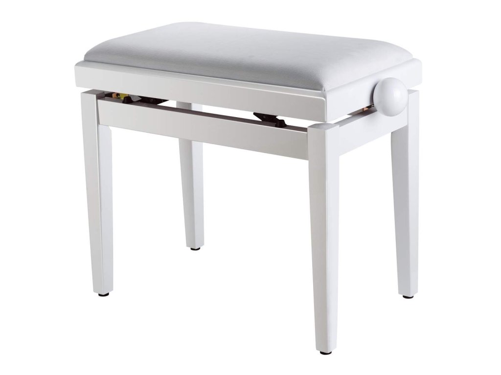Taboret do pianina o klasycznym kroju z łatwą regulacją wysokości i wygodnym siedziskiem pokrytym czarnym aksamitem. Siedziska produkowane są w wersji błyszczącej i matowej i są dostępne w kilku wersjach kolorystycznych odpowiadających najczęstszym kolorom pianin i fortepianów.