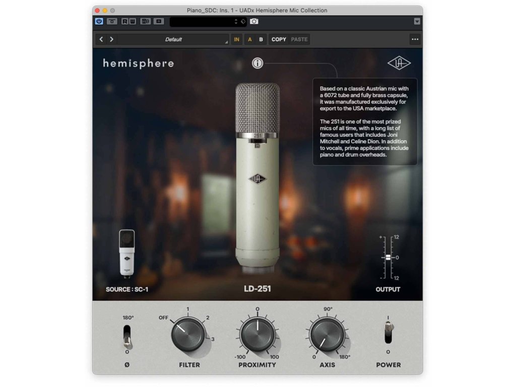 Dzięki tej samej, wielokrotnie nagradzanej technologii, co nasze modelujące mikrofony UA Sphere, dołączona wtyczka Hemisphere do modelowania mikrofonów zapewnia w studiu autentyczne brzmienie podstawowych kondensatorów Neumann, Sony, AKG i innych – w czasie rzeczywistym za pomocą aplikacji Apollo lub natywnie w Twoim DAW. Możesz również kształtować dźwięk nagrań za pomocą elementów sterujących filtrami, zbliżeniem i osią – zarówno podczas nagrywania, jak i później na już nagranej ścieżce.