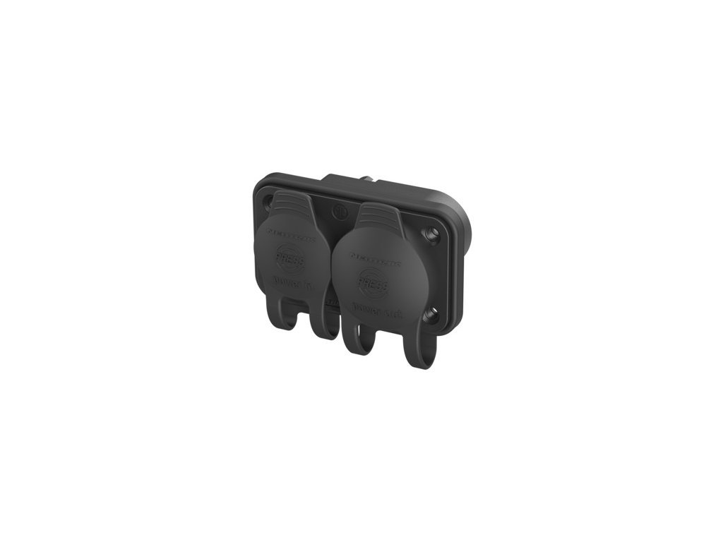 Neutrik SCNAC-04 to osłona ochronna z podwójnymi wieczkami i podwójnymi nakładkami (wejście/wyjście zasilania), która chroni złącza powerCON TRUE1 TOP NAC3PX-TOP przed kurzem i wodą zgodnie z klasą ochrony IP 65. Osłona jest przyjazna dla użytkownika i łatwa w montażu. Jego kompaktowa konstrukcja umożliwia wysoką gęstość złączy na panelu, co jest idealne do stosowania w technice oświetleniowej. Materiał jest odporny na promieniowanie UV, co zapewnia jego długą żywotność nawet w trudnych warunkach zewnętrznych.