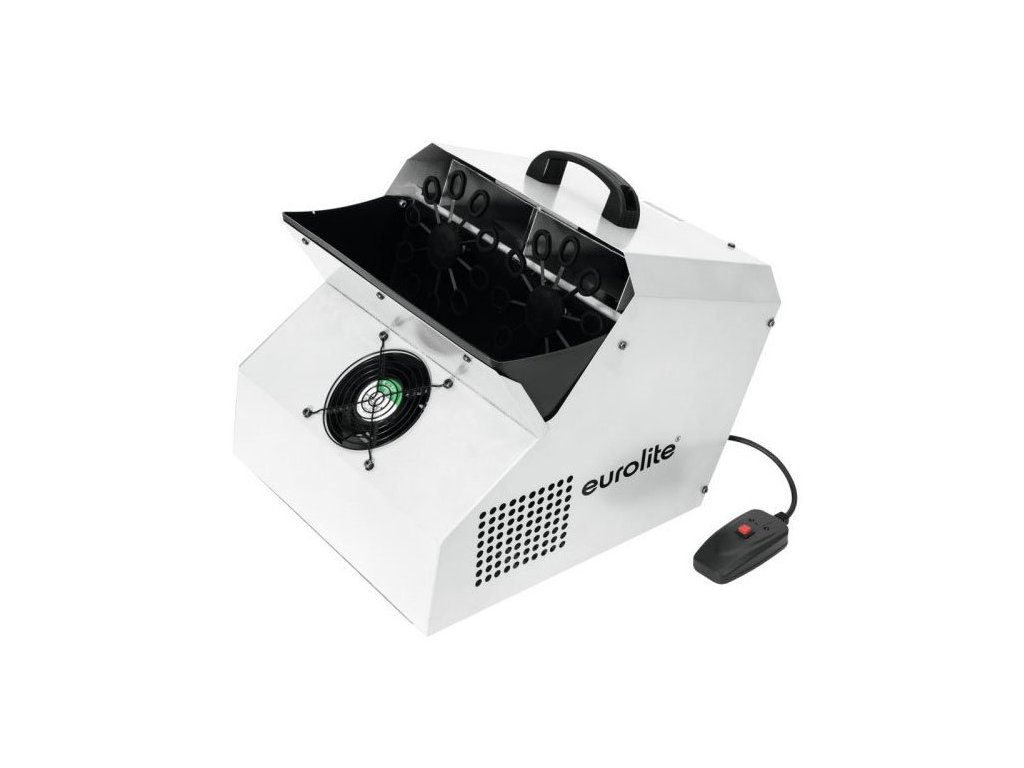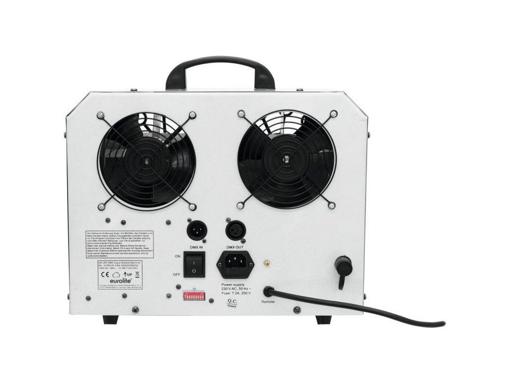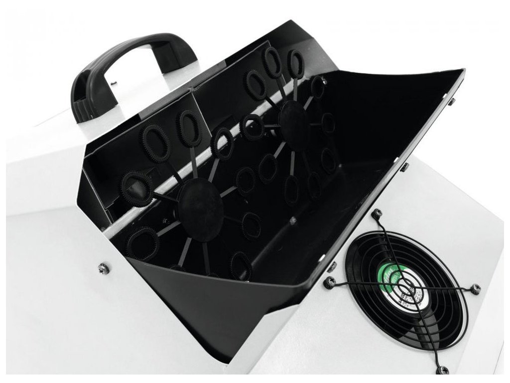 Wydajna wytwornica baniek mydlanych o mocy 40W. Urządzenie wytwarza bańki za pomocą pary obracających się kółek Bubble i wentylatorów. Możliwość sterowania sygnałem DMX (2 kanały sterujące) lub za pomocą sterownika z kablem zasilającym, który jest częścią zestawu. Przełącznik DIP do ustawiania trybów pracy i adresu DMX. Możliwość ciągłej, nieprzerwanej produkcji baniek. Zbiornik na 1,8 litra płynu. Idealna wytwornica baniek mydlanych do większych dyskotek, klubów tanecznych i mobilnych imprez.