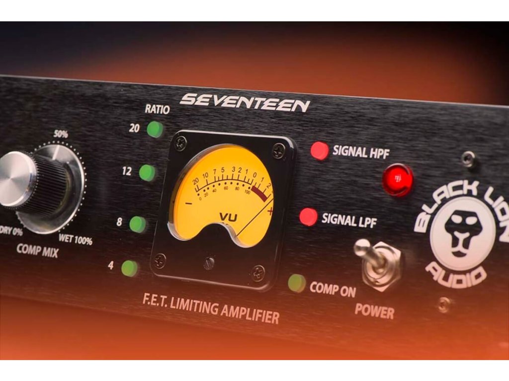 Seventeen to nie vintage'owy kompresor z 1976 roku, na którym nagrywał twój dziadek. To nie jest również remake słynnego kompresora. Model Seventeen zaprojektowany we współpracy z Tobiasem Lindellem wykazuje niesamowite detale i niuanse, których nie potrafi oddać oryginalny, stylowy kompresor. Nowy obwód front-end jest połączony z wykonanym na zamówienie transformatorem wyjściowym wyprodukowanym w Chicago. Dźwiękowo kompresor ten daje pełne basy, które bardzo dobrze równoważy otwartymi wysokimi tonami. Oczywiście jest też oddzielny zasilacz w stylu Black Lion dla niewiarygodnie niskiego poziomu szumów. Seventeen używa również wysokiej jakości kondensatorów Nichicon uważanych za jedne z najlepszych dostępnych kondensatorów.