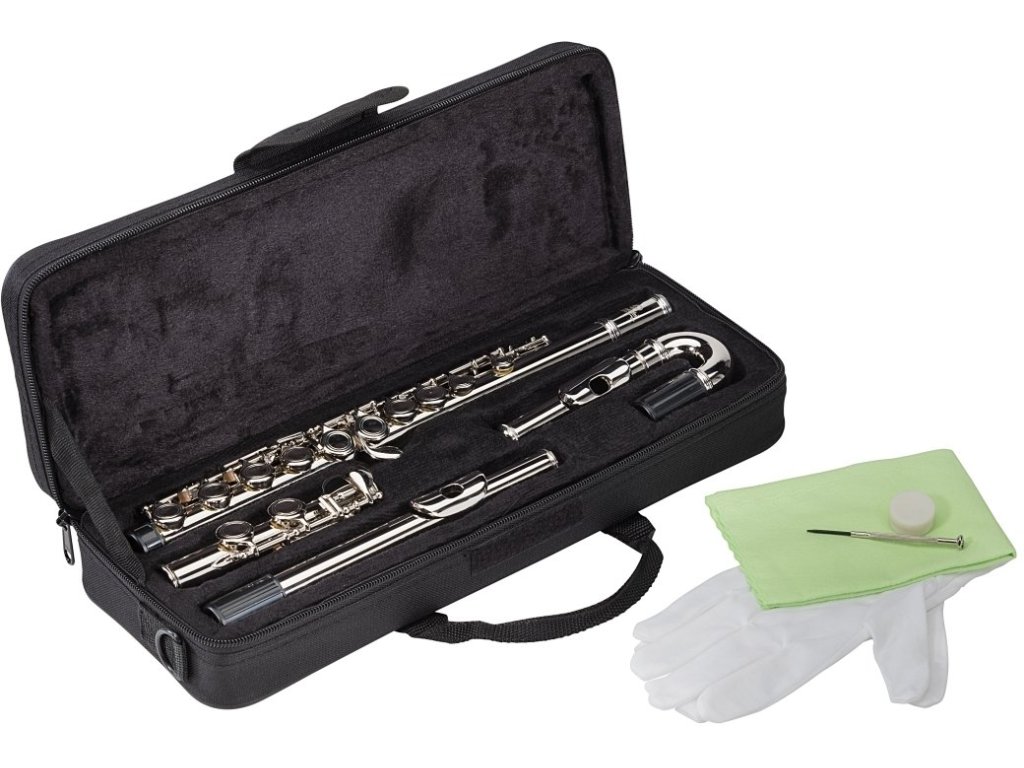 Flety poprzeczne włoskiej marki Soundsation są odpowiednie dla początkujących i studentów. Z ich pomocą przyswoją sobie podstawy gry na tym instrumencie.Model SFLC-10 jest wykonany z pakfongu z wykończeniem w postaci srebrnego lakieru. Oferuje prostą i zakrzywioną główkę, dzięki czemu gra na tym instrumencie będzie doceniana zarówno przez dorosłych, jak i dzieci. Flet posiada szesnaście zamkniętych klapek, mechanikę E i wysunięty system G, który jest uważany za prostszy niż tradycyjny układ klapek w prostej linii i jest szczególnie polecany początkującym studentom. Flet poprzeczny jest dostarczany w lekkim miękkim futerale z zewnętrzną kieszenią wraz z akcesoriami (środki do konserwacji).